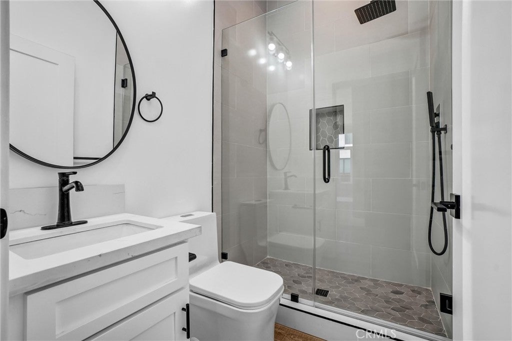 Newly Built 5 BD, 5 BTH Residence + Casita (ADU) with 2 BD, 2BTH. Tucked to the back of this small community, the main home invites you in with a charming covered front porch before opening to bright, airy interiors with soaring ceilings and elegant finishes. The formal living room welcomes you home and is followed by a cozy family room, where a sleek black wood-paneled electric fireplace sets the stage for movie nights, holiday traditions, or simply unwinding after a long day. Sliding glass doors lead to a covered patio and grassy backyard, ideal for kids, pets, or spontaneous weekend picnics, all framed by growing greenery for privacy and serene Palos Verdes hilltop views. The kitchen and dining area are truly the heart of the home. Spacious, sunlit, and ready for everything from casual breakfasts to feasts and holiday cookie baking with the kids. With abundant counter space, generous storage, a versatile pantry (hello coffee or wine bar!), and brand-new appliances, it’s designed to keep up with every culinary ambition. Upstairs, you’ll find four bedrooms each with their own bathroom, including a spacious primary suite complete with its own fireplace, walk-in closet, and access to a shared front balcony. The spa-inspired ensuite features dual sinks, a walk-in shower, and a freestanding soaking tub, perfect for melting the day away (wine and lavender candle optional, but highly recommended). A rear balcony, from one of the bedrooms, offers the perfect perch for sunset hues over the hills. Additional highlights include a main-level bedroom and bath, ideal for guests, a home office, podcast/yoga room, or creative space, plus a two-car garage and multiple outdoor areas for entertaining or relaxing under the Southern California sky. The detached casita (ADU), is a standout feature with its own private feel. Offering 2 bedrooms, 2 bathrooms, a bright open-concept living space, full kitchen with appliances, interior laundry, and separate utility meters (gas, electric, and water), it’s move-in ready and full of potential. Great space for aging parents, adult children, or rental income. Located in a gated, low-maintenance community of just four homes and their ADUs sharing a driveway, this property combines privacy, convenience, and modern design. All just minutes from shopping, dining, and major transportation routes. Two homes, one exceptional opportunity because sometimes, more really is more.