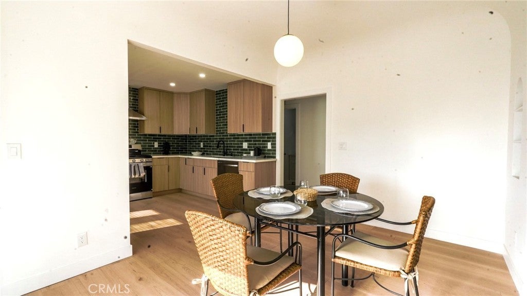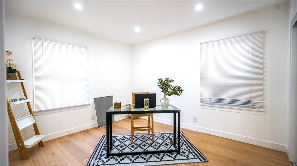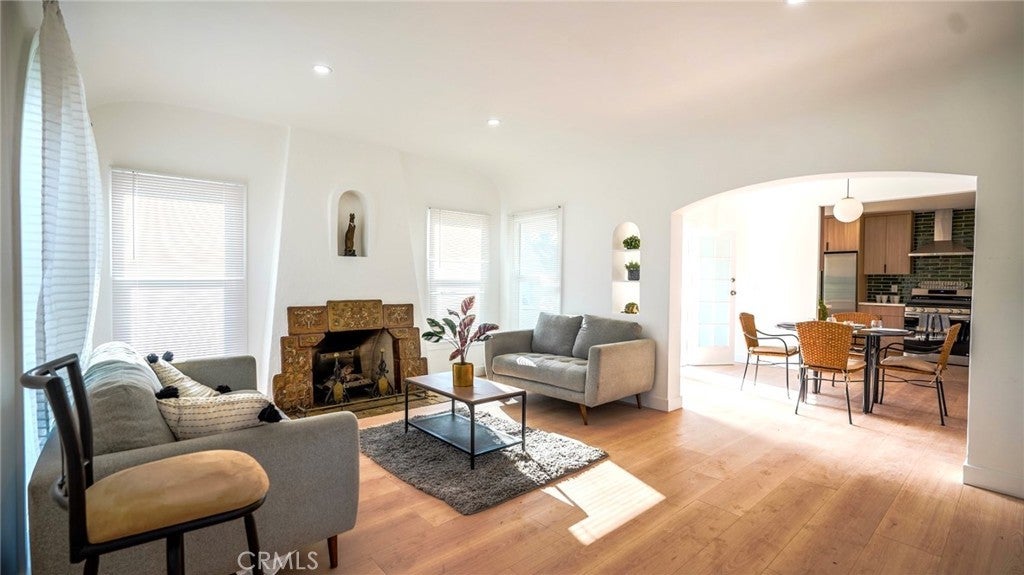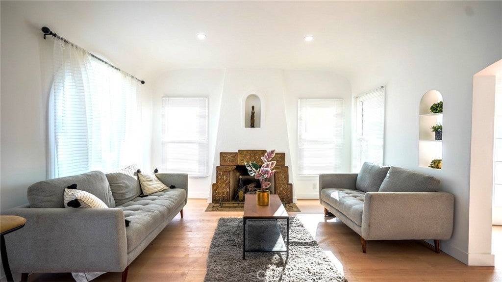 Welcome to this Spanish Revival Beauty corner lot home in the heart of Inglewood, Ca. Home features are 3bed 2 bath , master bedroom with private bathroom, living room and dinning room. Additional features are newly installed wood flooring , HVAC, spacious custom modern kitchen cabinetry, brand new appliances included , recessed lighting, tankless water heater, washer & dryer hook ups, dual pane windows, exterior fresh paint and beautiful curb appeal with new landscaping. The rear part of the home includes a private backyard for great entertainment, an extra room which can be used as an office , entertainment room or an extra bedroom which can produce some income potential. The home sits perfect because it captures natural lighting and this GEM is a must see. Prime location near SOFi Stadium, Intuit dome , kia forum major freeways, LAX, and 10minutes from the beach.