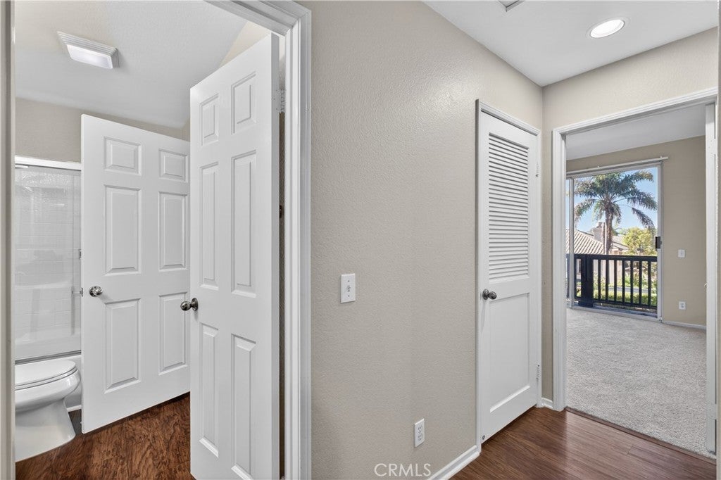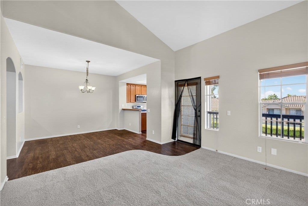 Turnkey upstairs condo with multiple balconies and resort-style amenities in the highly sought-after Tijeras Creek Villas of Rancho Santa Margarita. This light-filled home features soaring cathedral ceilings in the living room, creating an open and airy feel. The versatile floor plan includes a spacious primary suite and a secondary bedroom with direct access to the second bathroom, ideal for guests, roommates, or a home office setup. Enjoy seamless indoor-outdoor living with a wraparound balcony accessible from both the living room and primary bedroom, plus a second private balcony off the secondary bedroom—perfect for relaxing or entertaining. The interior is thoughtfully updated with luxury vinyl plank flooring, new carpeting, central air and heat, and a cozy gas fireplace. The kitchen offers stainless steel appliances, and the in-unit laundry adds everyday convenience. Parking is a rare bonus with a private one-car garage, assigned carport, and ample guest parking, allowing for up to three total spaces. Residents enjoy access to two pools and spas, a fitness center with sauna, BBQ areas, playgrounds, and beautifully maintained greenbelts. Ownership includes SAMLARC membership, offering access to Lago Santa Margarita, the Beach Club Lagoon, multiple pools, parks, sports courts, scenic trails, and year-round community events. An incredible opportunity to own in one of South Orange County’s most amenity-rich communities.