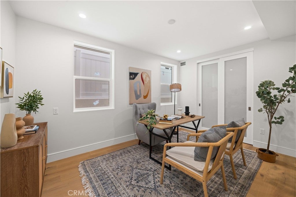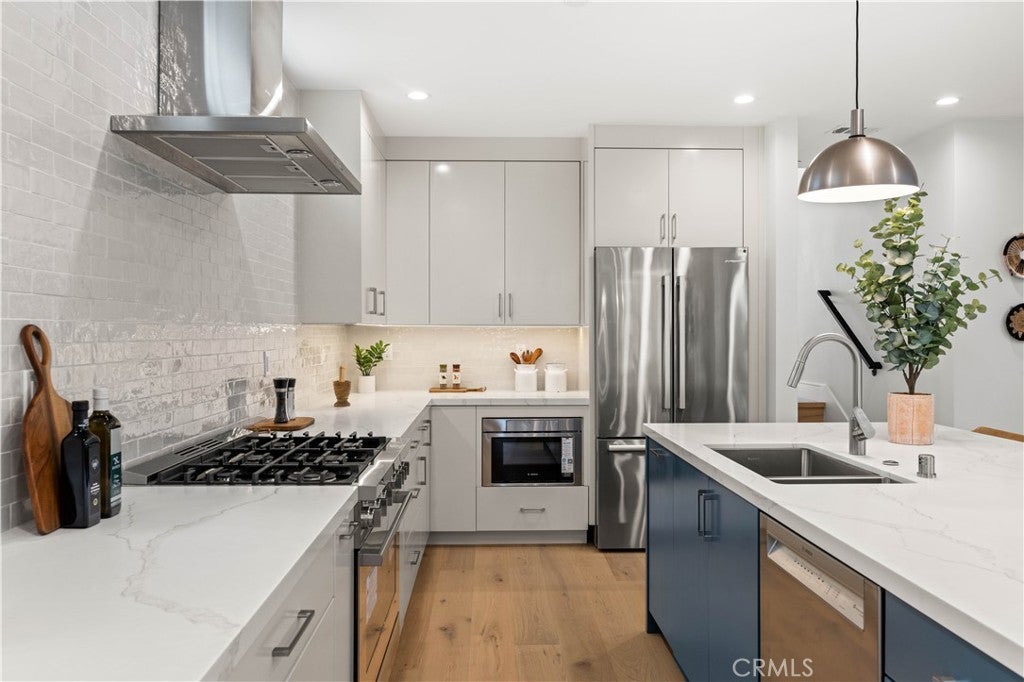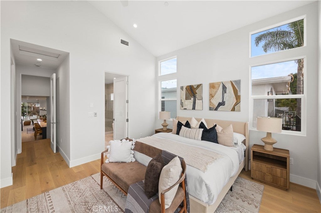 Imagine a home that captures the essence of coastal modernism, where architectural clarity meets the enduring romance of beach city living. Composed in a palette of soft, atmospheric tones, the structure reflects the quiet harmony of its environment—echoing the hues of sand, sky, and ocean. Light is treated as both medium and subject, filtering generously through the space to create an interior that feels at once expansive and intimate. At the heart of the composition lies a seamless dialogue between interior and exterior. Expansive sliding glass doors dissolve traditional boundaries, extending the living space outward and inviting the coastal air within. This fluid transition fosters a sense of continuity, where moments of solitude and gathering coexist in a carefully balanced rhythm. The open-plan interior is anchored by a kitchen that functions as both centerpiece and communal axis. Here, refined materials and custom detailing converge in quiet sophistication. A generous central island serves not only as a practical surface, but as a place of connection—an intentional gathering point within the spatial narrative. Above, the primary suite unfolds as a private retreat, thoughtfully composed to evoke rest and restoration. Its adjoining bath space draws on the language of spa design, offering a sensory experience defined by calm textures and restrained elegance. Additional rooms maintain this ethos of adaptability and cohesion, shifting effortlessly between purposes while preserving a unified design language. Positioned within reach of the shoreline and the subtle rhythms of daily coastal life, the residence transcends mere function. It becomes an exploration of living as art—where space, light, and material come together to elevate the everyday into something quietly extraordinary.