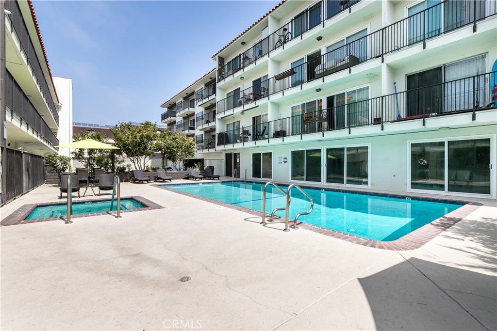 Refined coastal living becomes your everyday reality in this beautifully updated and meticulously curated home, nestled in the heart of one of Hermosa Beach’s most vibrant and sought-after communities. This sleek one-bedroom residence blends modern sophistication with effortless beachside comfort. Ideally positioned just steps from the scenic Greenbelt, one block from all that Pier Avenue offers, and moments from the sand, this home offers seamless access to acclaimed restaurants, boutique shopping, cafés, and beloved annual beach events. With a high walk score, secure building access, and close proximity to the Hermosa Pier, you’re perfectly situated to enjoy the area’s most celebrated coastal amenities—from high-end grocery options and organic eateries to marquee events like the Beach Life Festival and world-famous volleyball tournaments. Set around a lush, tree-filled courtyard featuring a variety of mature trees, a bright lemon tree, vibrant landscaping, and frequent hummingbird visits, the community provides a peaceful retreat rarely found along the coast. Amenities include a heated pool, spa, and recreation area—ideal for both relaxation and social gatherings. Inside, the residence has been thoughtfully refreshed. Nearly every surface has been newly painted, while double-pane windows and sliding doors enhance comfort and quiet. Custom interior and closet doors, engineered wood flooring, updated fixtures, and well-designed storage add cohesion and style. Sun-filled, west-facing windows illuminate the open concept layout, and the home’s footprint—nearly 100 sq. ft. larger than comparable units—creates a notably more spacious living experience. Including the oversized bedroom that easily accommodates a king-sized bed with additional space for a home office, reading nook, or creative area. The generous, uniquely shaped balcony extends the living space. It provides a view of the Greenbelt and the central courtyard and has room for a seating setup and a BBQ, bringing the breeze indoors. Clean, bright, and move-in ready, this exceptional home offers an elevated beachside lifestyle—ideal for first-time buyers, those seeking a refined coastal retreat, or pet owners who value green spaces and walkability.