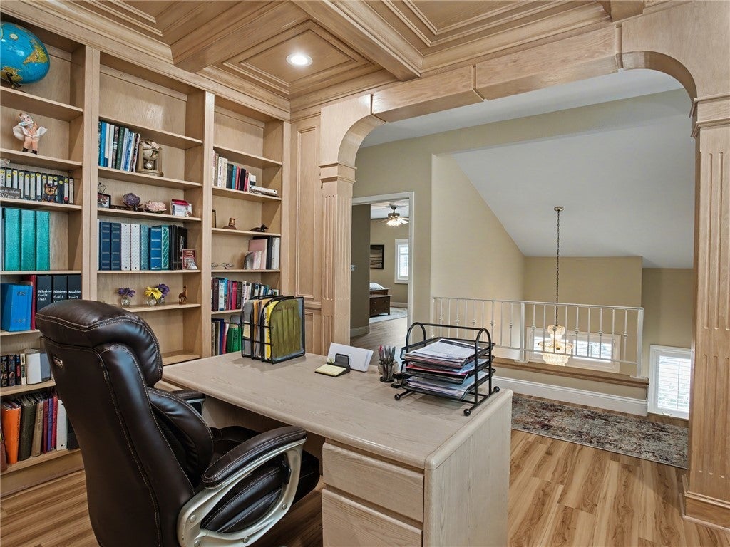 Ceiling Fan(s), Crown Molding, Eat-in Kitchen, Granite Counters, High Ceilings, Recessed Lighting, All Bedrooms Up, Primary Suite