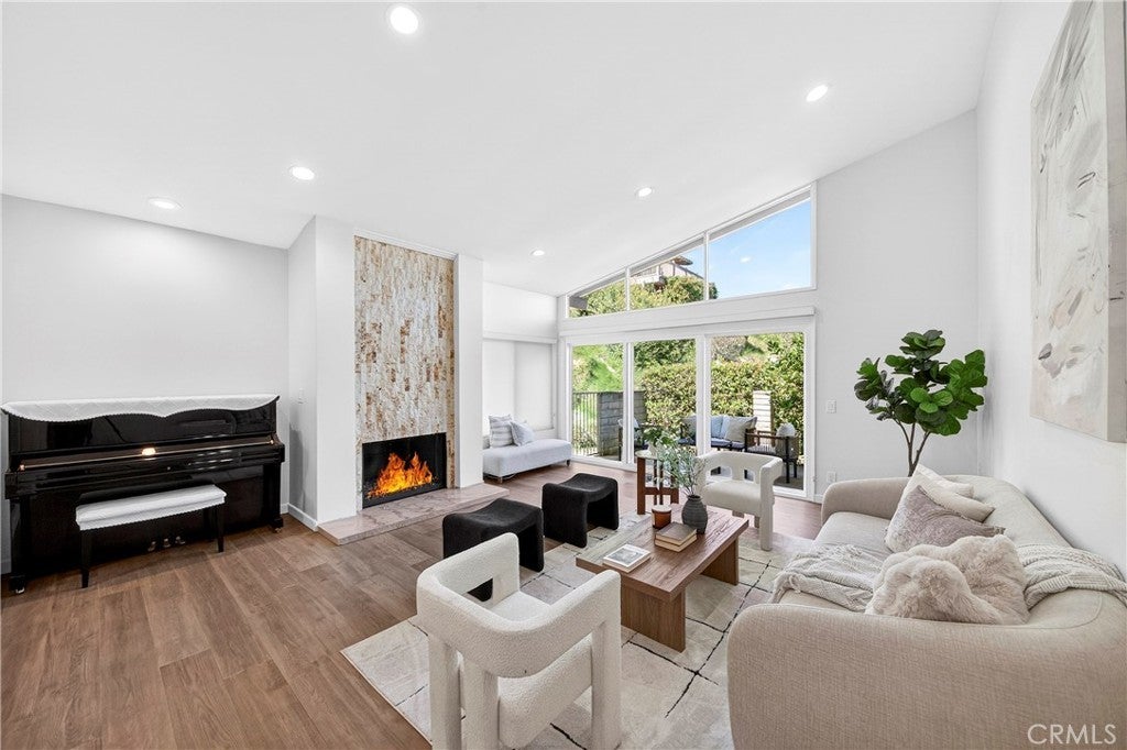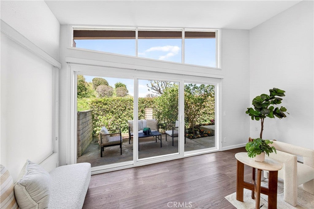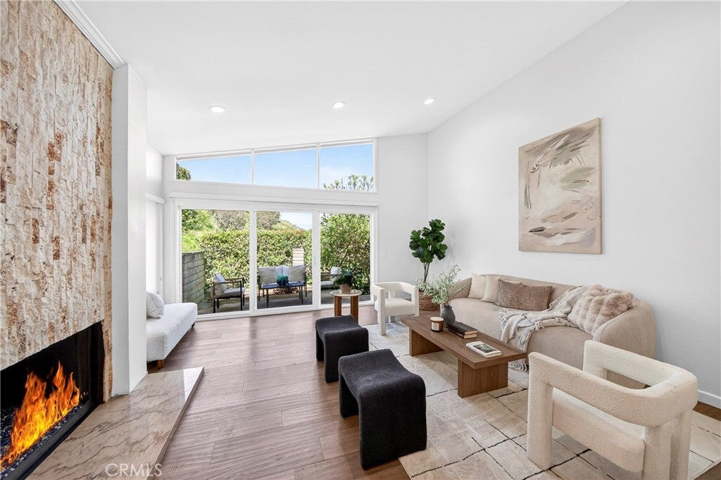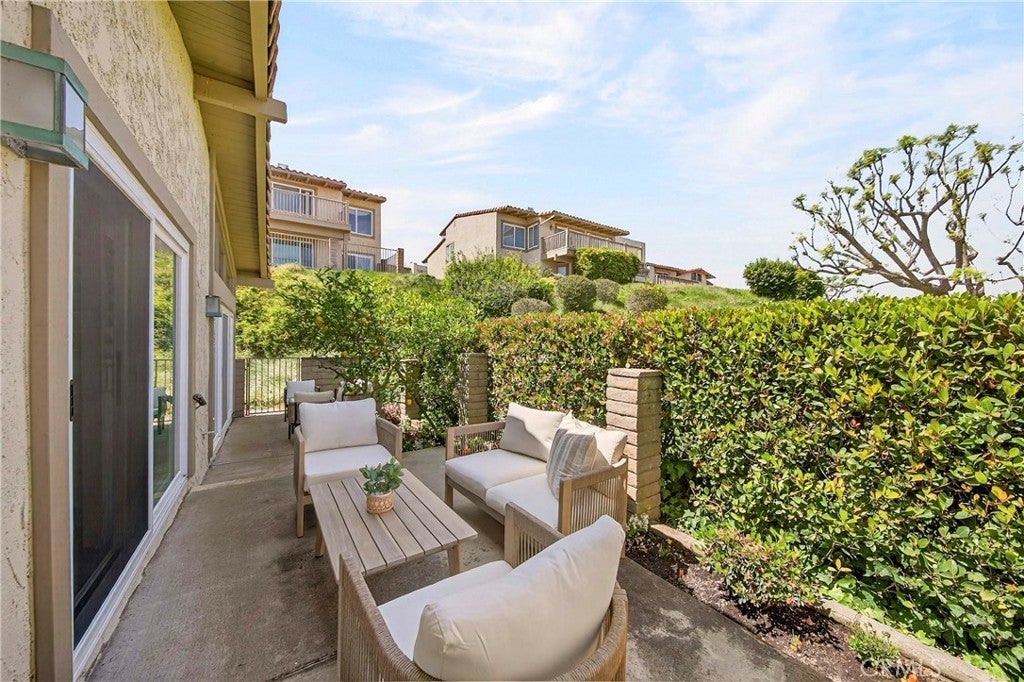 Beautiful and very private, this rare single-level home is located in the gated community of "The Hill" in desirable Rancho Palos Verdes! This charming home features 3 bedrooms and 2 bathrooms with 1,834 sq. ft. of living space. Recently updated for a contemporary look, it boasts new flooring, a vaulted ceiling, and a custom travertine marble fireplace. Adjacent to the living room is a formal dining area that leads to a sunny atrium with French door entry. The kitchen includes Silestone counters, tile flooring, recessed lighting, and stainless steel appliances. The very spacious master bedroom, also featuring a vaulted ceiling, includes a large walk-in closet and hardwood flooring, as well as a remodeled bathroom with dual vanity marble countertops and floors. Enjoy a private patio with a greenbelt view, just a short walk to the sparkling association pool, Jacuzzi, and tennis courts. The second bedroom has an adjacent remodeled bath, and there is a spacious third bedroom as well. Direct entry from the 2-car attached garage enhances convenience, with only one neighboring unit adjacent. This fabulous home is within walking distance of the Peninsula Shopping Center, which offers theaters, shops, and dining. It also provides easy access to Hawthorne and Crenshaw.