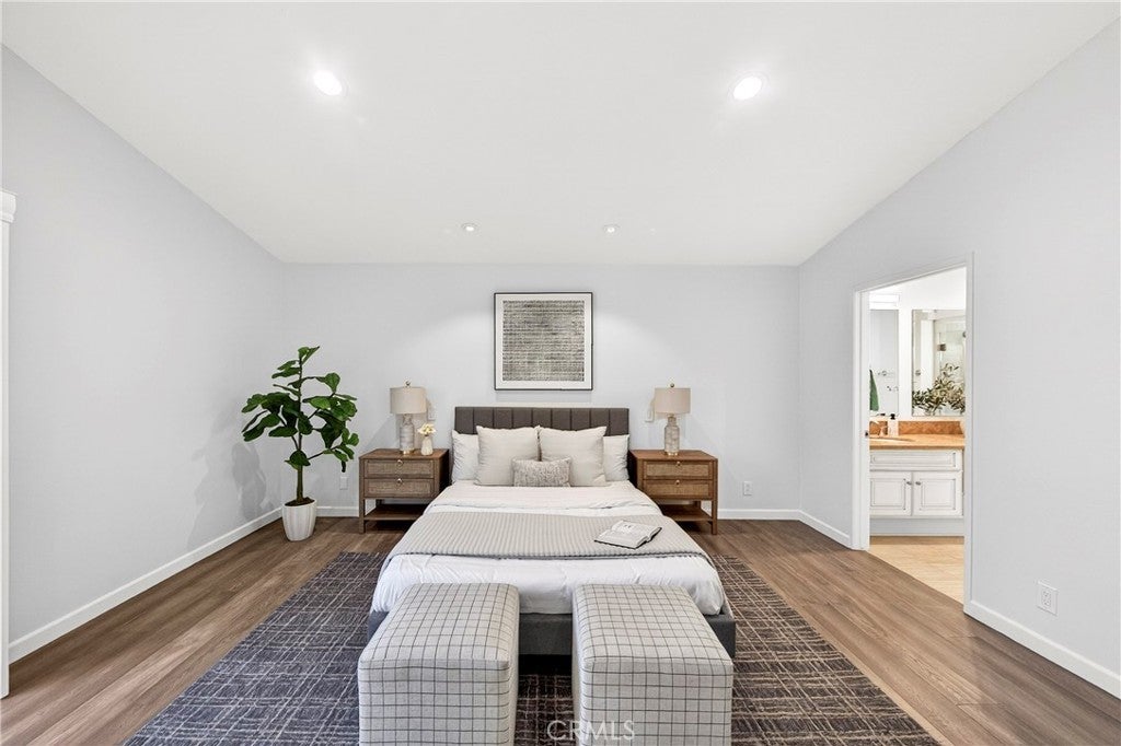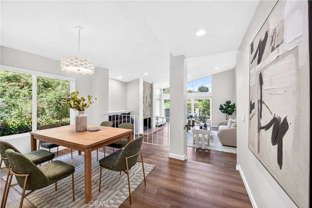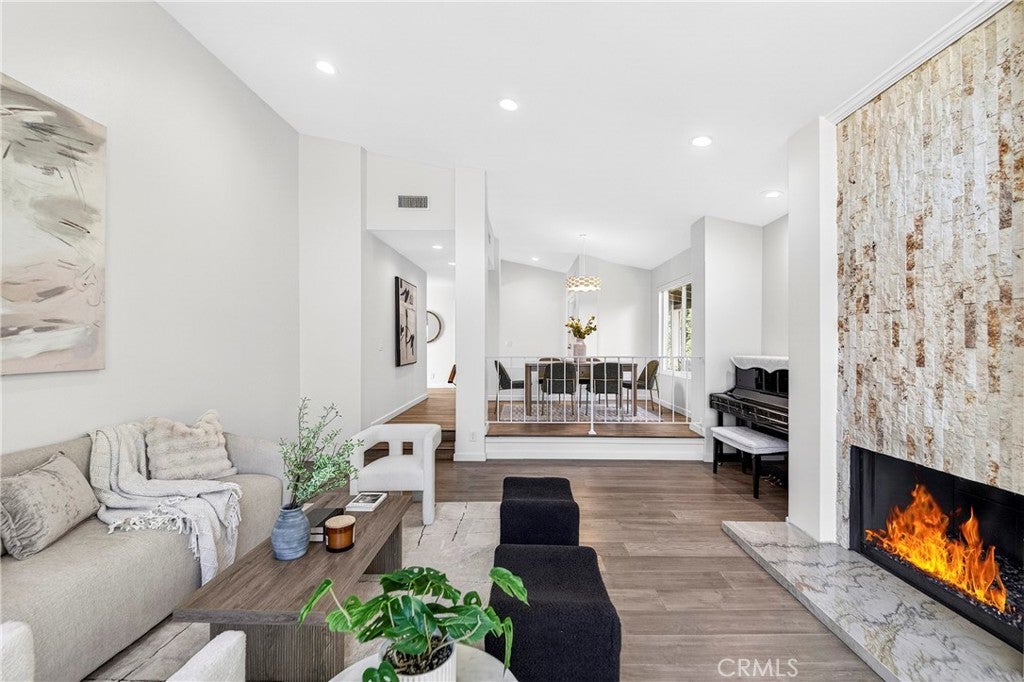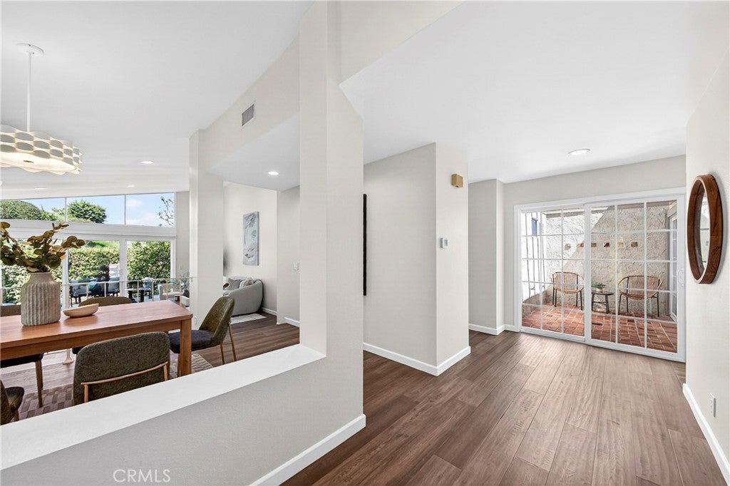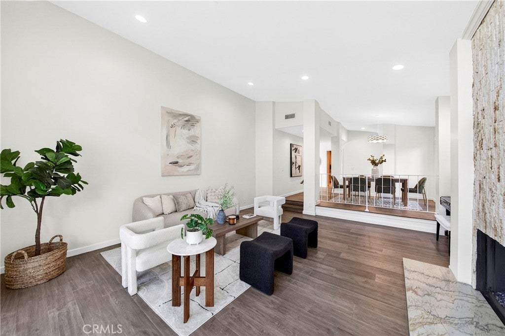 Beautiful and very private, this rare single-level home is located in the gated community of "The Hill" in desirable Rancho Palos Verdes! This charming home features 3 bedrooms and 2 bathrooms with 1,834 sq. ft. of living space. Recently updated for a contemporary look, it boasts new flooring, a vaulted ceiling, and a custom travertine marble fireplace. Adjacent to the living room is a formal dining area that leads to a sunny atrium with French door entry. The kitchen includes Silestone counters, tile flooring, recessed lighting, and stainless steel appliances. The very spacious master bedroom, also featuring a vaulted ceiling, includes a large walk-in closet and hardwood flooring, as well as a remodeled bathroom with dual vanity marble countertops and floors. Enjoy a private patio with a greenbelt view, just a short walk to the sparkling association pool, Jacuzzi, and tennis courts. The second bedroom has an adjacent remodeled bath, and there is a spacious third bedroom as well. Direct entry from the 2-car attached garage enhances convenience, with only one neighboring unit adjacent. This fabulous home is within walking distance of the Peninsula Shopping Center, which offers theaters, shops, and dining. It also provides easy access to Hawthorne and Crenshaw.