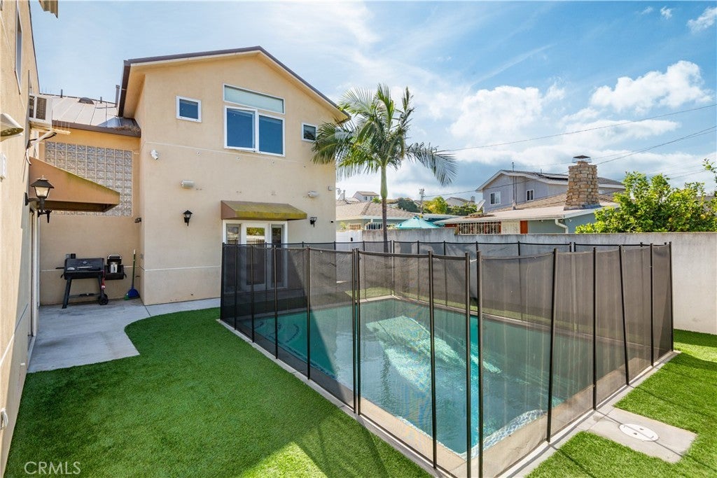 Gorgeously crafted custom home located on a quiet street in the Walteria neighborhood of South Torrance. This modern residence features a spacious and functional layout with a primary suite and two junior suites upstairs, along with a guest bedroom and full bath on the main level—ideal for visitors or multi-generational living. Additional highlights include a dedicated office and a separate laundry room with ample storage. Built with exceptional quality and attention to detail, the home includes central air and heat, a central vacuum system, copper plumbing, a 200-amp electrical panel, and a durable steel roof with a lifetime warranty. Interior finishes feature natural honey maple wood floors, solid birch wood doors, and Jeld-Wen windows throughout. A security system and a heated saltwater pool with remote temperature control add comfort and convenience. The gourmet kitchen is equipped with granite countertops and backsplash, custom maple cabinetry, a large island with a glass-top bar, stainless steel built-in appliances, and a six-burner Viking cooktop. The open-concept family room offers a custom gas fireplace, French doors, surround sound, and a wet bar—perfect for entertaining. The primary suite features vaulted ceilings, custom lighting, surround sound, and a double-sided fireplace that connects to the luxurious bathroom. The spa-like primary bath includes a soaking tub for two, walk-in shower, sauna, granite countertops, tile flooring, and a spacious walk-in closet. The downstairs guest suite offers privacy with its own French doors and a full bath finished with marble. A versatile bonus space (approximately 304 sq ft, not included in total square footage) functions as a wine cellar or lounge, complete with a refrigerator and direct outdoor access. Abundant custom windows fill the home with natural light, enhancing its open and airy design. Located within the highly regarded Torrance Unified School District, serving South High, Richardson Middle, and Walteria Elementary. Conveniently close to shopping, dining, and major amenities.