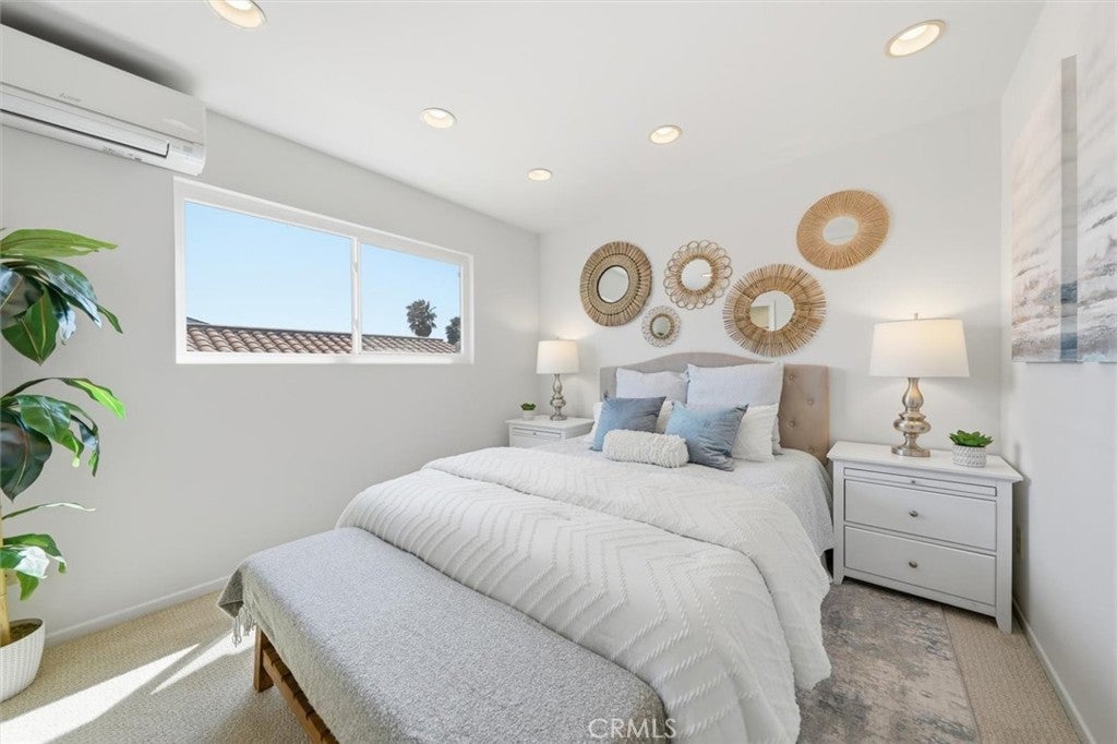 Located on an ultra-quiet cul-de-sac, this 4-bedroom, 3-bath home offers 2,111 sq ft of well-designed living space, including a convenient bedroom and full bath on the main level. Situated on a flat 5,093 sq ft lot, the property features a spacious, sun-filled backyard and patio—ideal for kids, pets, and outdoor entertaining. The popular floorplan includes vaulted ceilings, a kitchen/family room combination, and fresh updates with new paint and flooring throughout. The remodeled kitchen features upgraded cabinetry, countertops, flooring, and appliances, and opens seamlessly to the family room with additional built-in storage and direct access to the private, east-facing backyard. The living room boasts 20-foot ceilings, a decorative fireplace, and flows into a formal dining area—perfect for gatherings and entertaining. An open-tread staircase leads upstairs to three additional bedrooms and two bathrooms. The expansive primary suite offers vaulted ceilings, a 14-foot closet, a cozy sitting area with access to a west-facing deck, and an upgraded en-suite bathroom with a separate vanity area. Two additional bedrooms feature generous closet space and share a full bath. Additional highlights include A/C and direct access to a 2-car garage through a utility/laundry room with extra storage. Ideally located just one block from Sunnyglen Park and within close proximity to Towers Elementary and West Torrance High School. Enjoy easy access to local shopping, hospitals, beaches, and freeways. Situated in a highly desirable neighborhood of well-maintained homes, this is a fantastic place to live.