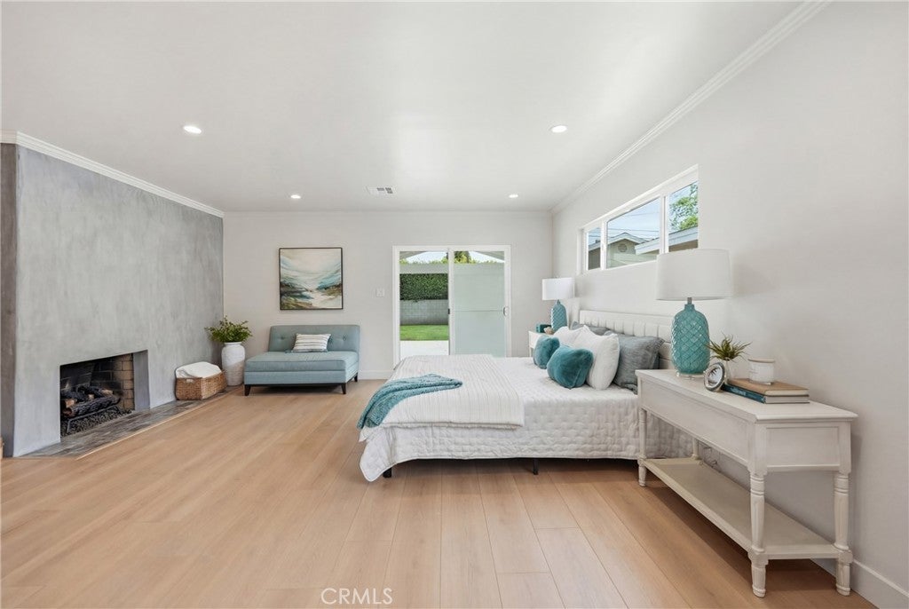 This is a beautifully upgraded 3-bedroom, 2-bathroom home offering 1,350 square feet of modern, move-in ready living space. Thoughtfully renovated throughout, the home features brand new flooring, fresh interior paint, new windows, and a newer roof, along with a new HVAC system for year-round comfort and efficiency. Step inside to a bright, open layout filled with natural light that seamlessly connects the living, dining, and kitchen areas, creating an inviting space ideal for both everyday living and entertaining. The updated kitchen showcases oak cabinetry, designer finishes, and comes equipped with a new dishwasher, microwave, and range, along with a convenient laundry area located just off the kitchen for added functionality. Both bathrooms have been tastefully remodeled with stylish designer touches and updated fixtures. The spacious primary suite serves as a private retreat, featuring its own fireplace, a large layout, and a walk-in closet. The home offers a warm and cozy feel throughout, complemented by a well-designed floor plan and comfortable, well-sized bedrooms. Outside, enjoy a large driveway, a two-car garage, and a spacious backyard featuring a covered patio area, perfect for entertaining guests or relaxing outdoors.