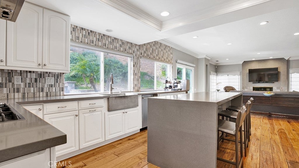 This is the kind of entertaining in style that makes the decision easy. A true resort-style setting with a covered lanai, built-in outdoor kitchen, and multiple areas to gather, unwind, and stay awhile. Private, quiet, and framed by hillside greenery, it creates a sense of separation that is hard to find and even harder to recreate. This is where mornings start slower, afternoons stretch longer, and evenings naturally pull people outside. Inside, the home offers a calm and luxurious setting. Wide plank flooring, clean lines, and an open layout connect the kitchen, dining, and living spaces in a way that feels natural and usable. The kitchen anchors it all with a large working island, generous working space, and a direct line to both indoor and outdoor living, making it just as functional for everyday life as it is for a full house. The primary suite pulls back and gives you space to reset. Generous in size, filled with light, and paired with a well-finished bathroom retreat, it feels comfortable and complete. Secondary bedrooms and a dedicated office provide flexibility for how people actually live today. And then there is the layer that buyers are paying more attention to right now. Solar already in place, helping offset long-term operating costs and bringing a level of efficiency that supports both day-to-day living and long-term ownership. As well as a commercial grade water softener that protects plumbing, appliances, and fixtures while delivering the kind of water quality that simply feels better to live with every day. Car and outdoor enthusiasts will also be thrilled by the massive RV parking space, fully equipped with electrical hookups. Set in a part of Yorba Linda where homes have more space between them and the pace feels more controlled, you are minutes from trails, parks, and top-ranked schools, with nearby shopping and dining that keeps everything within reach without bringing the city congestion with it. For buyers coming out of tighter, more compressed neighborhoods, this is where the trade becomes clear. More space, more privacy, and a backyard that turns the home into a staycation.