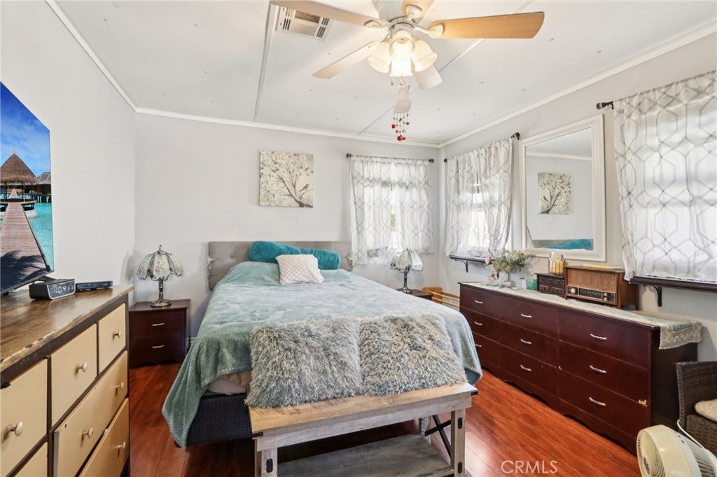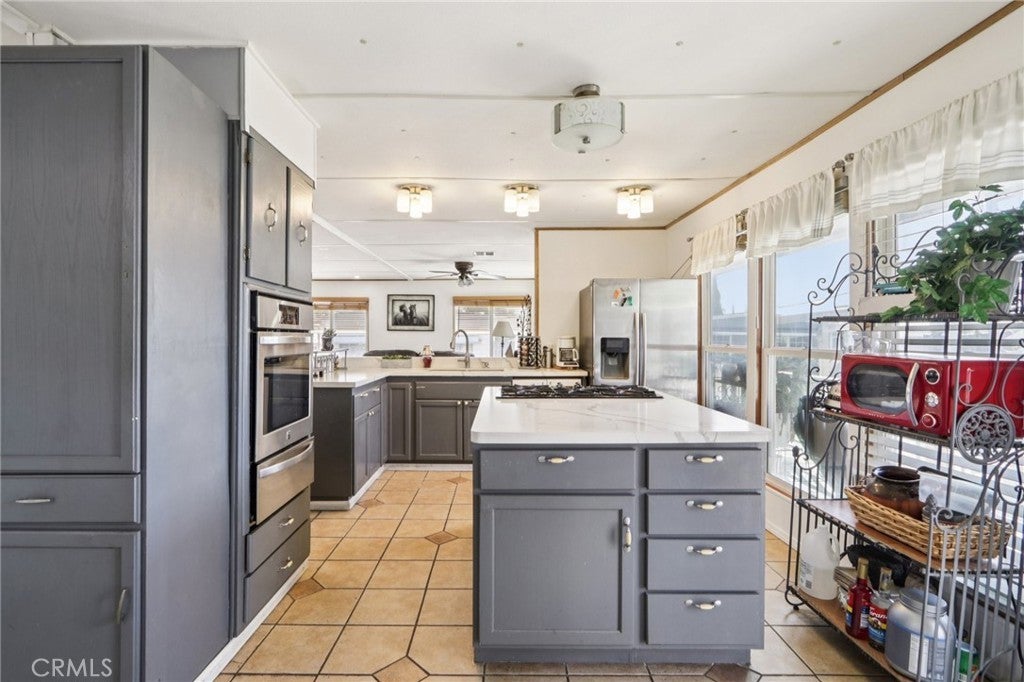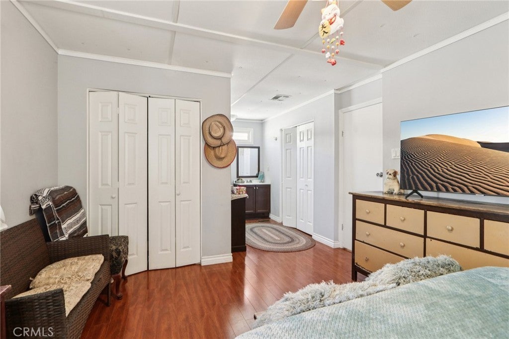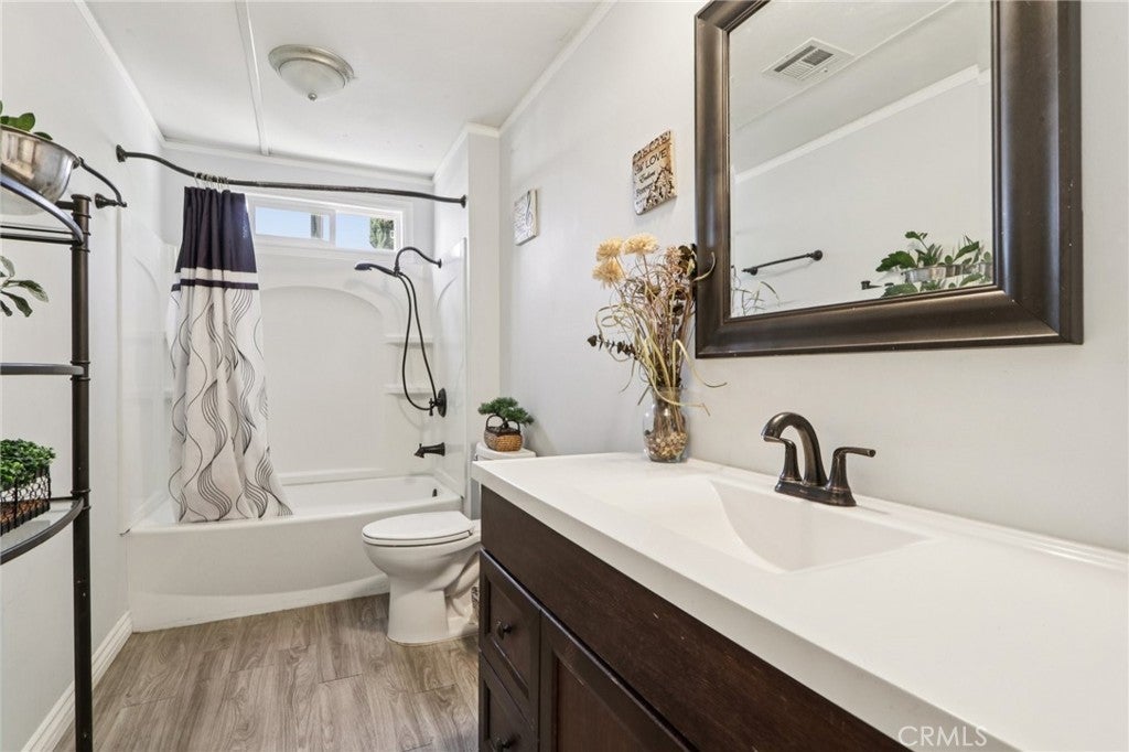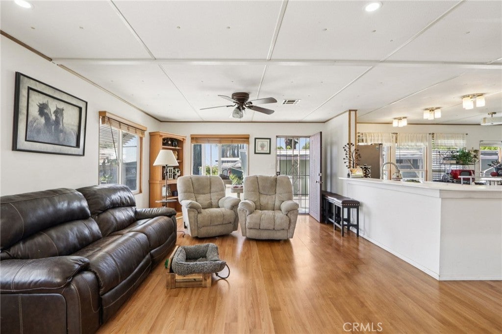 Style meets flexibility in this spacious 1,440 sq ft double-wide located in Rancho Hermoso—one of Sylmar’s most sought-after communities, where pride of ownership and a welcoming neighborhood atmosphere set the tone for everyday living. A charming front porch creates the perfect spot for morning coffee or unwinding at the end of the day. Step inside and the open-concept layout immediately makes its presence known, with natural light pouring through multiple windows and laminate and tile flooring flowing throughout the living spaces for a clean, modern feel. The living room offers plenty of space to relax or gather, while the kitchen delivers both style and function with quartz countertops, grey cabinetry, abundant storage, custom lighting, and generous prep space. Its seamless connection to the dining and family areas makes entertaining easy—whether it’s a casual dinner night or a lively weekend get-together. Two comfortable bedrooms provide restful retreats, each with ceiling fans for added comfort. The primary suite offers extra space to recharge, complete with dual closets and a beautifully remodeled private bathroom. A second remodeled bath serves the rest of the home with equal style. One of the standout features is the versatile bonus room—perfect as a home office, creative studio, workout space, or even a potential third bedroom depending on your needs. A conveniently located laundry room with ample storage keeps daily life running smoothly. Practical upgrades add peace of mind, including a newer HVAC system for year-round comfort, updated copper plumbing, newer insulation and ceilings, a newer water heater, and two outdoor storage sheds. Parking for two vehicles adds everyday convenience. Life here extends beyond the front door. Residents of Rancho Hermoso enjoy access to a sparkling community pool and recreation center—ideal for sunny afternoons, neighborhood gatherings, and relaxing weekends close to home. Space to spread out, room to adapt, and a community that makes it easy to enjoy the lifestyle Sylmar is known for.
