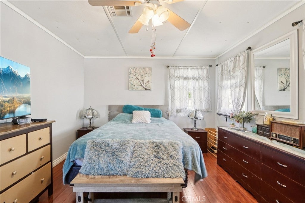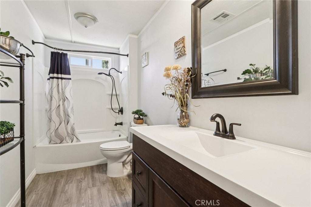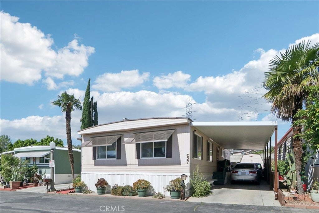 Style meets flexibility in this spacious 1,440 sq ft double-wide located in Rancho Hermoso—one of Sylmar’s most sought-after communities, where pride of ownership and a welcoming neighborhood atmosphere set the tone for everyday living. A charming front porch creates the perfect spot for morning coffee or unwinding at the end of the day. Step inside and the open-concept layout immediately makes its presence known, with natural light pouring through multiple windows and laminate and tile flooring flowing throughout the living spaces for a clean, modern feel. The living room offers plenty of space to relax or gather, while the kitchen delivers both style and function with quartz countertops, grey cabinetry, abundant storage, custom lighting, and generous prep space. Its seamless connection to the dining and family areas makes entertaining easy—whether it’s a casual dinner night or a lively weekend get-together. Two comfortable bedrooms provide restful retreats, each with ceiling fans for added comfort. The primary suite offers extra space to recharge, complete with dual closets and a beautifully remodeled private bathroom. A second remodeled bath serves the rest of the home with equal style. One of the standout features is the versatile bonus room—perfect as a home office, creative studio, workout space, or even a potential third bedroom depending on your needs. A conveniently located laundry room with ample storage keeps daily life running smoothly. Practical upgrades add peace of mind, including a newer HVAC system for year-round comfort, updated copper plumbing, newer insulation and ceilings, a newer water heater, and two outdoor storage sheds. Parking for two vehicles adds everyday convenience. Life here extends beyond the front door. Residents of Rancho Hermoso enjoy access to a sparkling community pool and recreation center—ideal for sunny afternoons, neighborhood gatherings, and relaxing weekends close to home. Space to spread out, room to adapt, and a community that makes it easy to enjoy the lifestyle Sylmar is known for.