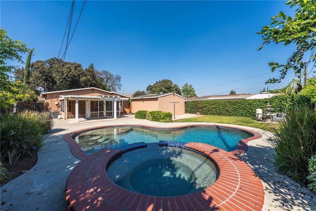 Beautiful and inviting home tucked away in a desirable area of West Covina on a quiet cul-de-sac lined with mature trees. Step inside to an open living room with a cozy fireplace and two large windows that fill the space with natural light. The kitchen offers generous cabinet space, granite countertops, and a dining area conveniently located nearby. This home features spacious bedrooms with ample closet space, a full bathroom with a separate shower and jetted tub, and a convenient half bath for guests. Additional highlights include washer and dryer hookups, RV electrical plug, original hardwood floors under the existing flooring and a two-car detached garage. Sitting on a large lot, the private backyard is an entertainer’s dream with a swimming pool, spa, and an enclosed patio. Conveniently located near shops, restaurants, schools, parks, and freeway access.