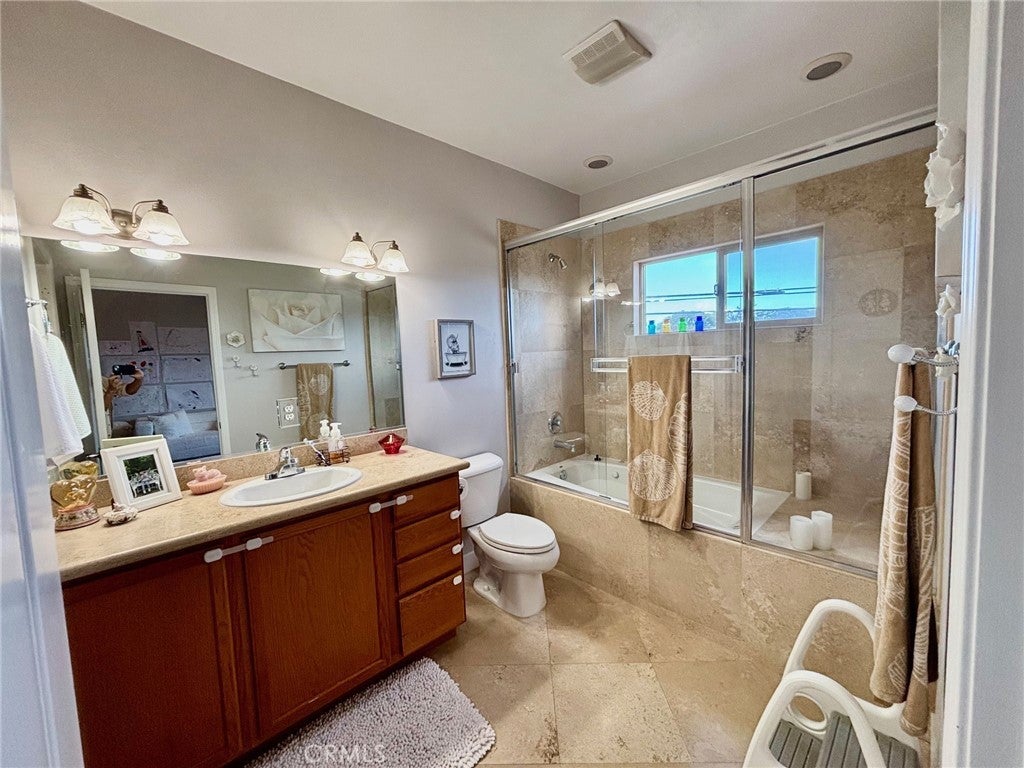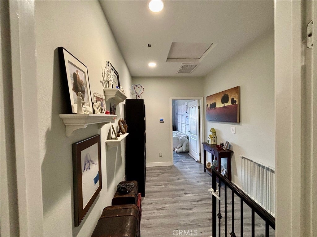 Not your typical townhome! A Mediterranean style with soaring high ceilings on both levels and over 1400 square feet. Open the gate to reveal a private patio space perfect for BBQ's and entertaining. Once inside, the wow factor kicks in. One large open concept living area where you have sight lines from the kitchen -through the living room- to the patio. Be a part of the action. The living room features a beautiful stone tile fireplace that adds warmth and charm to the home. The kitchen enjoys tons of counter space ,a breakfast bar, wood cabinetry and a walk in pantry for fantastic storage. There is direct access to the 2 car garage and laundry area. The half bath is tucked away nicely. Upstairs there are 2 HUGE primary suites with vaulted high ceilings, balconies, private bathrooms and huge walk-in closets. The main one has an East facing balcony "think sunrise", a desk area (or seating nook) and a romantic fireplace. That ensuite has a dual vanity, tub shower combo and a walk in closet. The other primary bedroom suite has a West facing balcony "think sunsets". Same soaring high ceilings, private bathroom and walk in closet. This set up is perfect for room mates. At the top of the stairs, on the landing there is enough bonus space for an office desk area. There are so many good things about this home like air conditioning, an extra parking spot, ceiling fans and storage shelves in the attached garage. Award winning Torrance school district. This one is a must see!