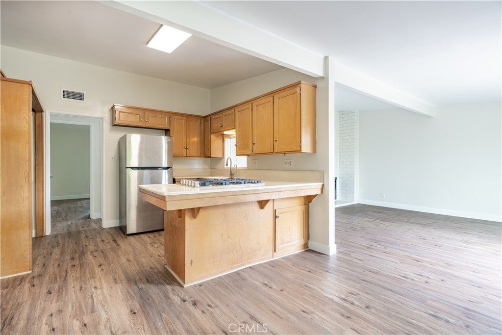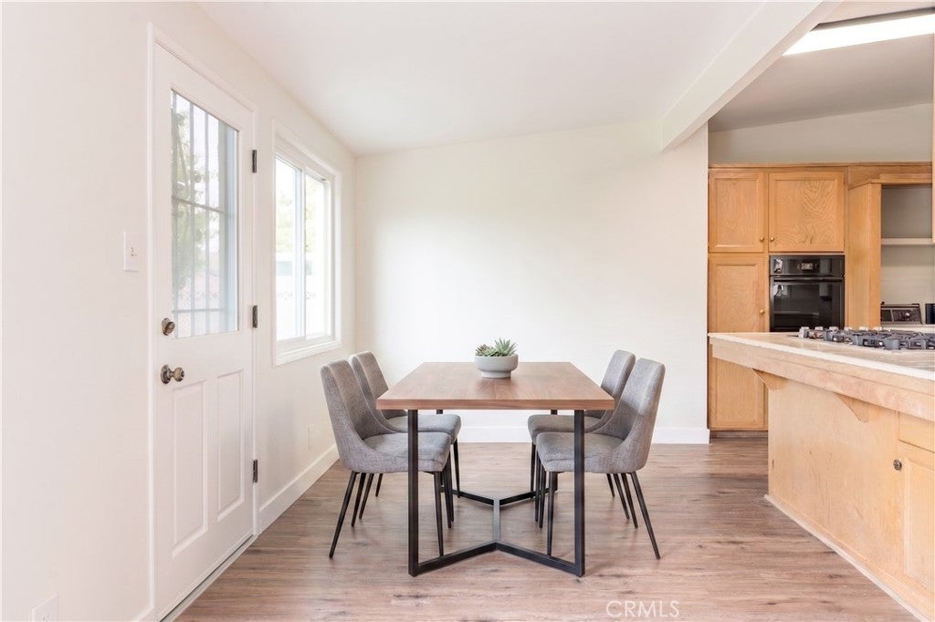 Beautiful 4-bedroom, 1¾ bath home tucked away on a hidden cul-de-sac! This move-in-ready property features sloped ceilings and many upgrades including new luxury vinyl plank flooring, fresh interior paint, and upgraded baseboards throughout. Enjoy year-round comfort with central heating and A/C, dual-pane vinyl windows. The home also offers copper plumbing and updated ABS sewer lines, providing peace of mind and reliable water flow. The kitchen offers abundant cabinet space with convenient pullout drawers, a brand-new oven, and a 6-burner cooktop -- perfect for home chefs. A breakfast bar with counter overhang perfect for bar stools, opens to a spacious living room designed to accommodate a large entertainment setup. Washer, dryer, and stainless steel refrigerator are all included. All bedrooms feature new closet doors and stylish brushed nickel hardware, adding a modern touch throughout the home. Step outside to a private backyard ideal for entertaining, complete with a lush lawn and a generous concrete patio. A long concrete pad provides excellent potential for a storage shed, tiny home, or possible ADU (buyer to verify). There’s also room to expand the existing home or create your own outdoor retreat. The attached 2-car garage is lined with cabinets which can be removed, offering flexibility to widen parking, create a home gym, or design a custom entertainment space. This home combines comfort, upgrades, and future potential—all in a desirable location. *THIS HOME IS FOR SALE ONLY, NOT FOR RENT OR LEASE!*