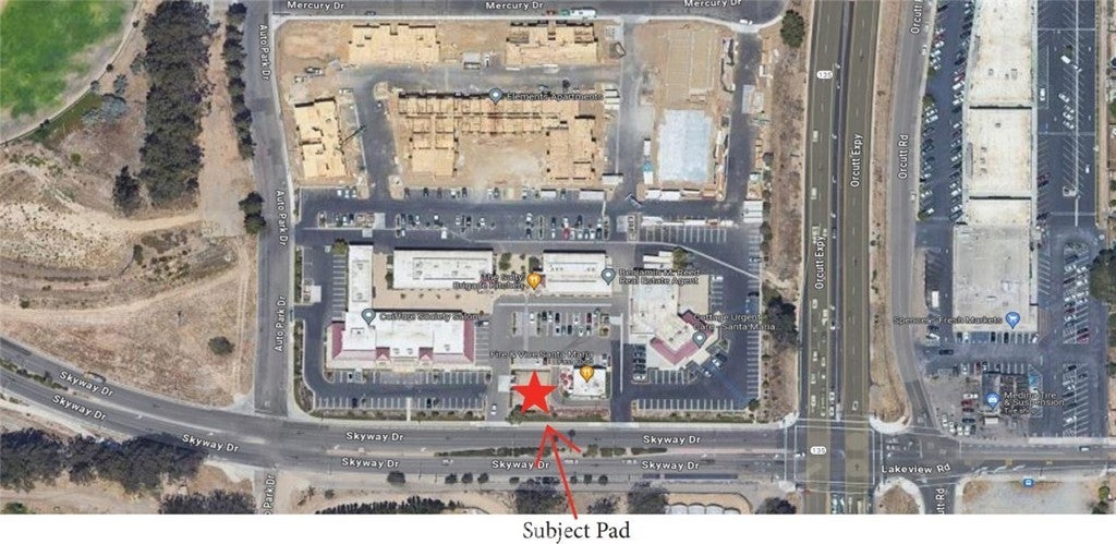 2,800 SF pad to be constructed in Santa Maria’s exciting new development at the northwest corner of Hwy 135 and Skyway Drive across from the SMX Airport. The Skyway Center features a number of dining options, retail shops and offices, including Cottage Health Urgent Care, 805 Charcuterie, Fire and Vice, Oak and Iron, Pure Pilates and The Collective, a dynamic marketplace in a community-oriented environment. $2.75/SF, NNN