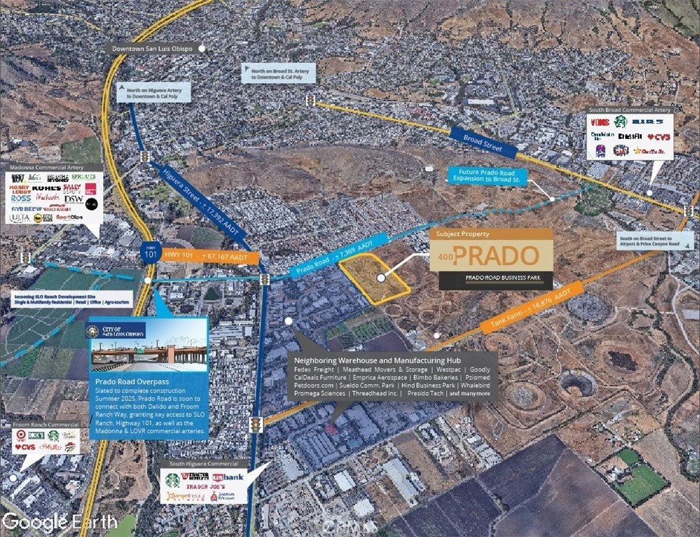 A commercial developer’s dream, the Prado Road Business Park presents an approved commercial subdivision in San Luis Obispo, featuring an 11 net acre 6-lot tract zoned Business Park, allowing a wide array of uses. Commercial tracts of this size are rare in the City of SLO and typically take up to a decade to get approved. Construction documents have been completed to finish the tract, and lot lines can still be adjusted to suit specific needs. In addition, the front two parcels of the tract are approved for 49,000 sf of medical space. A rare, unique opportunity to step into a turnkey commercial tract in the City of San Luis Obispo. $7,995,000