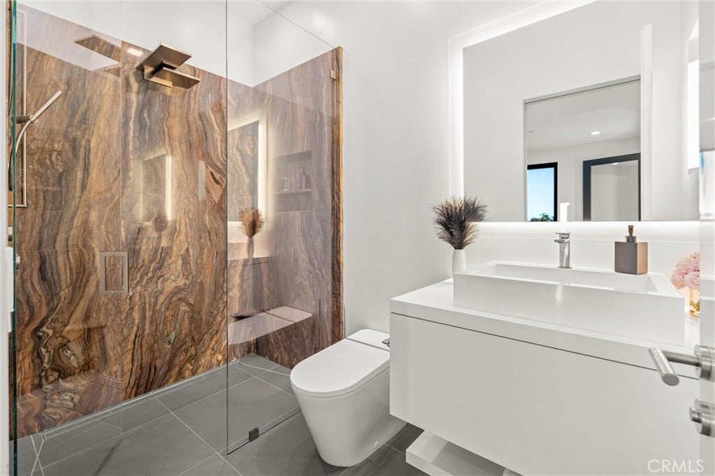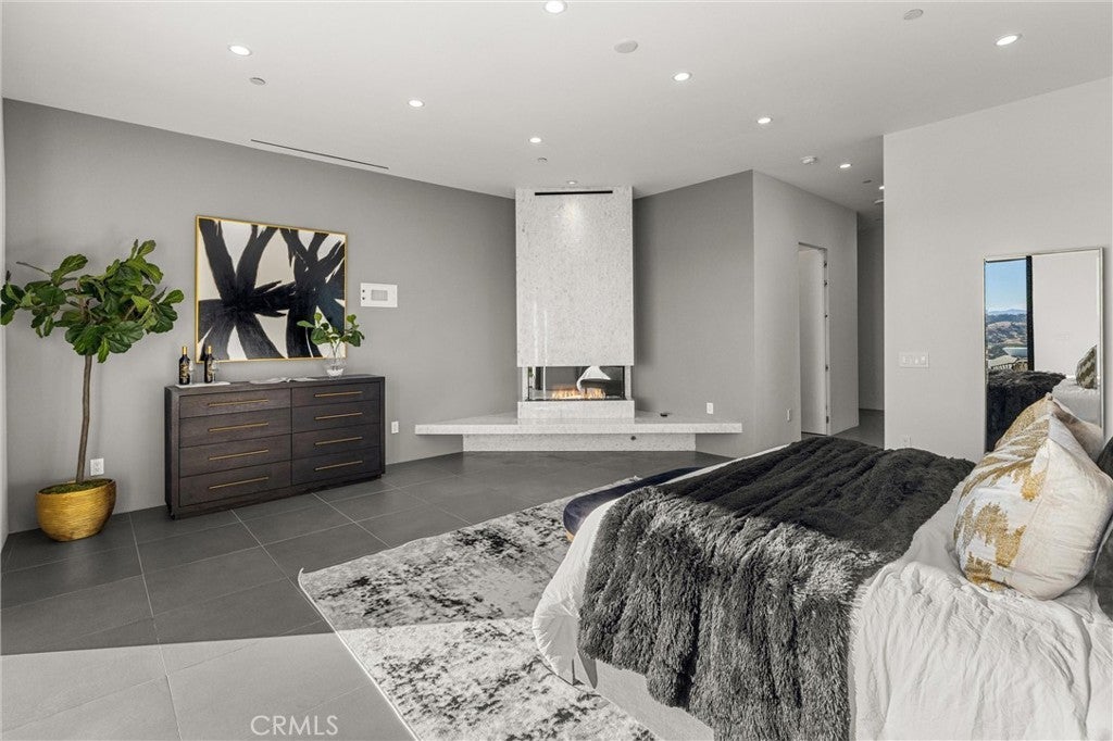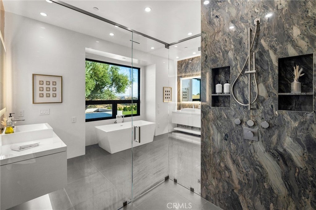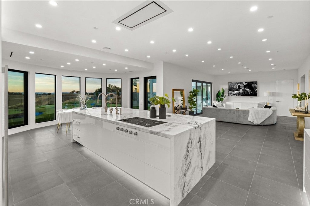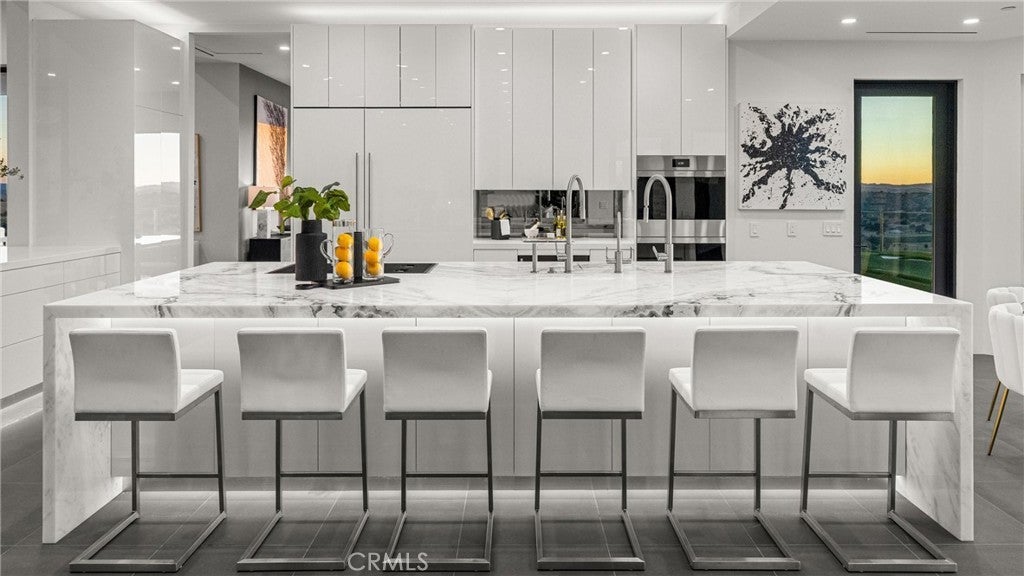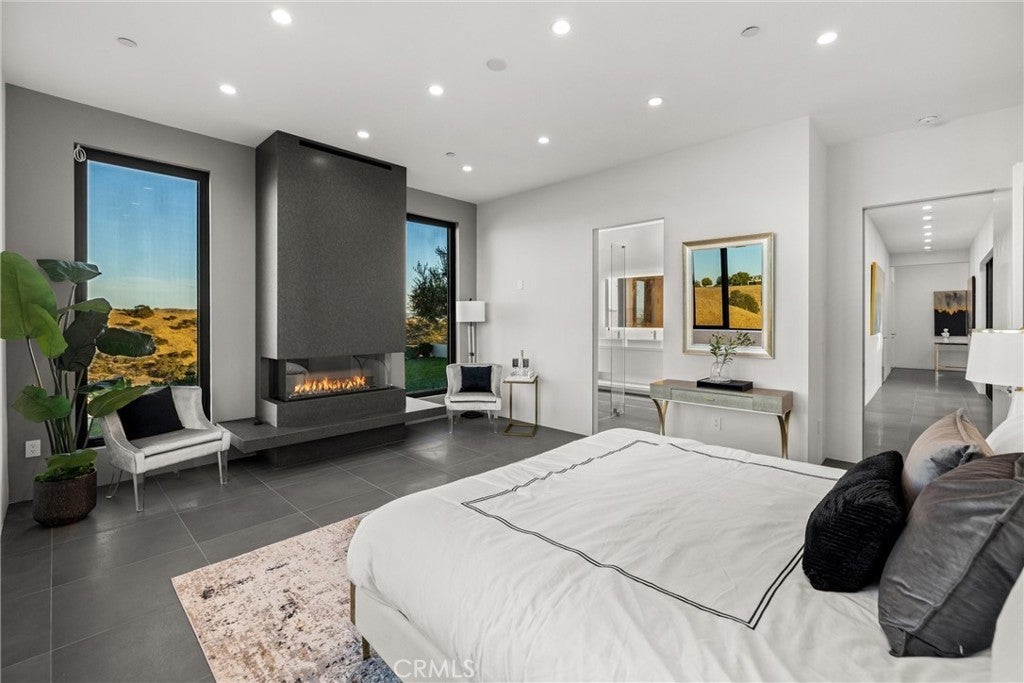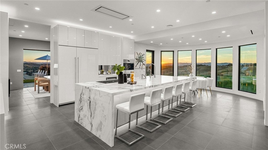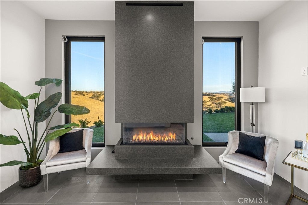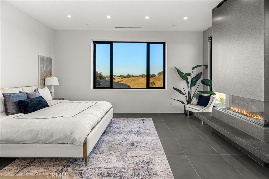 Escape to the majestic rolling hills of Paso Robles, a premier destination in California’s wine country. Nestled on 40 private acres above the famed Cass Winery, this Modern Luxury Estate epitomizes the essence of indoor-outdoor living with sophistication and elegance. The Italian cypress-lined drive leads to the heart of the property, where the beautiful landscape invites you to experience the seamless integration of nature and modern architecture. The Grand Atrium serves as the estate’s main entrance and central hub, welcoming you into a space that effortlessly connects to both the main living areas and a private guest apartment. As you enter the wide-open living room you experience panoramic views of rolling hills through expansive sliding glass doors that seamlessly transition between the interior space and the outdoors, blurring the line between the two environments. The gourmet kitchen is a chef’s delight, featuring a stunning waterfall island with moonstone quartz countertop w/ top tier appliances, and a Vinotemp Private Reserve wine refrigerator adds a touch of artistry. The kitchen nook has direct access to the outdoor alfresco kitchen. And a formal dining room provides an elegant setting, complete with a 300+bottle temp-controlled wine wall. The primary en-suite offers a private sanctuary, with breathtaking views. A Brazilian white Calcite stone fireplace adds warmth, while the en-suite bathroom offers a spa-like retreat. Dual custom vanities, a freestanding tub, a luxurious waterfall rain shower designed by Franco Sargiani are surrounded by Verde Fusion stone from Brazil. The suite boasts dual closets, custom cabinetry & lighted shelving. Additional guest accommodations include two en-suite bedrooms, a fully equipped gym for wellness enthusiasts and a private studio with open-concept living. Outfitted w/ luxurious finishes, two private decks, a full kitchen, laundry closet, and a stunning walk-in shower. The Outdoor living space offers a resort-caliber setting with a state-of-the-art alfresco kitchen. The infinity-edge pool overlooks Paso Robles’ rolling hills, offering a backdrop for relaxation. A heated built-in hot tub, Baja sun shelf, and in-pool seating enhance the experience, while a resort-style putting course, designed by renowned Camron Howell, adds a playful touch. The outdoor amenities also include bocce ball court and built-in basketball hoop, ensuring that every aspect of the estate is as luxurious as it is functional.