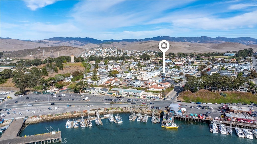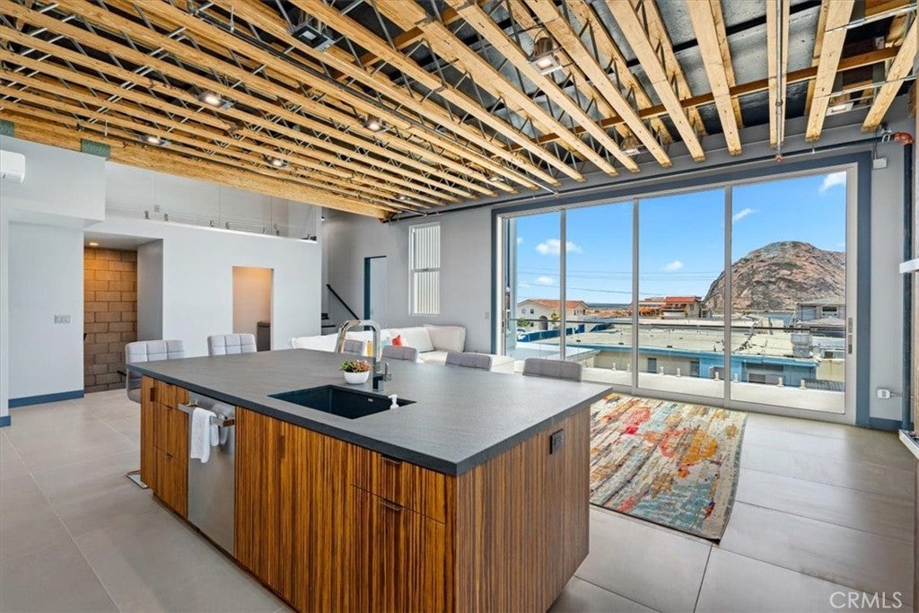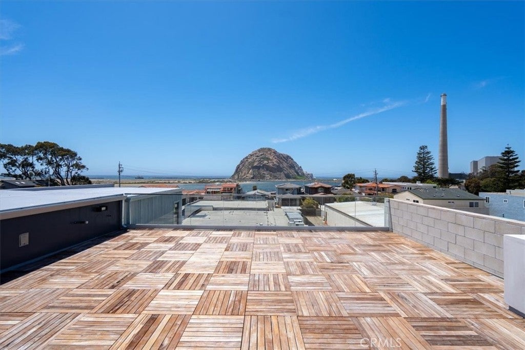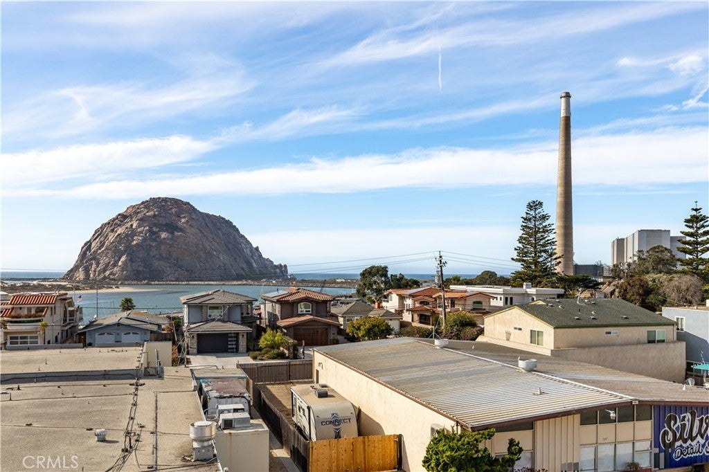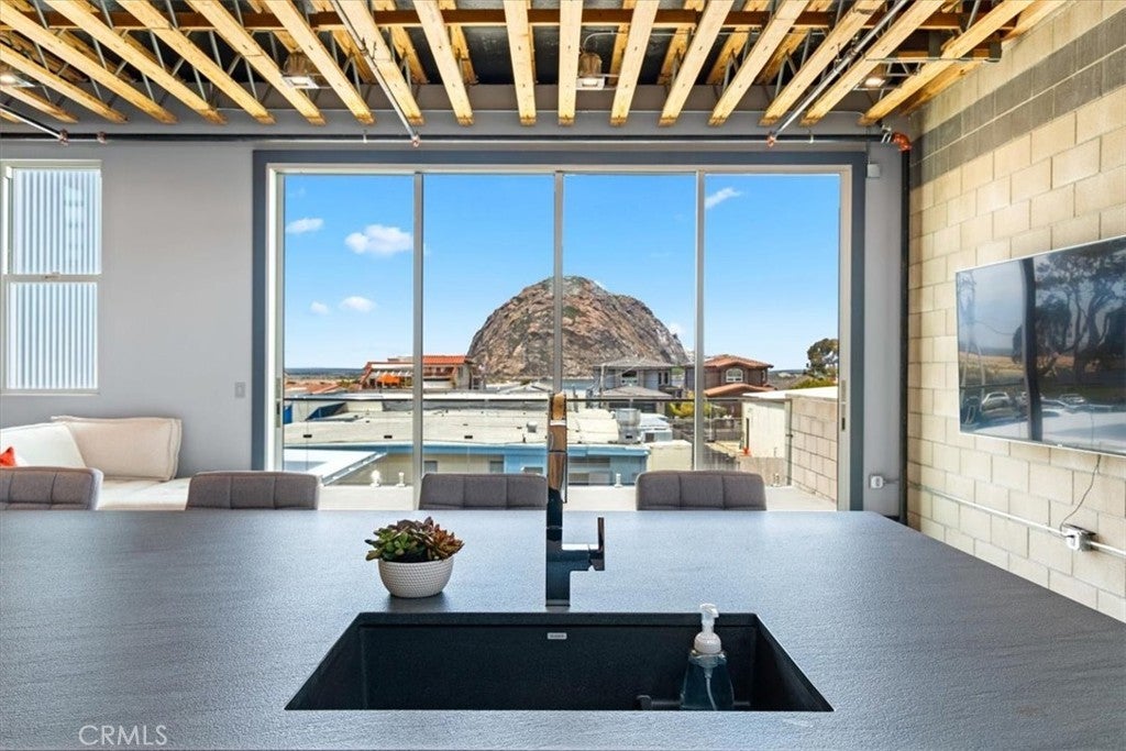 ALL REASONABLE OFFERS CONSIDERED - Brand-new modern industrial-style mixed-use property just two blocks from the oceanfront on The Embarcadero. The ground floor includes two commercial spaces: a spacious two-car garage and a light-filled 253 sqft storefront, each with custom glass roll-up doors and access to a shared ADA-compliant bathroom. Ideal for a variety of business types—buyers to verify permitted uses with the City of Morro Bay. The second floor features a luxurious 1 bed 1 bath residence with a loft, open-concept living area, custom bamboo cabinetry, leathered granite kitchen island, and a floor-to-ceiling moving glass wall system framing iconic views of Morro Rock. The kitchen is outfitted with premium JennAir Noir appliances including a built-in cappuccino maker, double oven, and integrated refrigerator. The third-floor rooftop deck is enclosed by sleek glass balustrades and offers panoramic views from Cayucos to Montana De Oro. A rare opportunity to combine prime commercial exposure with high-end coastal living. ****Rooftop Deck: 646 sqft / 2nd Floor Residential: 1,282 sqft with a 220 sqft balcony / 1st Floor Commercial: 1,153 sqft and 253 sqft. / Total Conditioned 2,744 sqft.****
