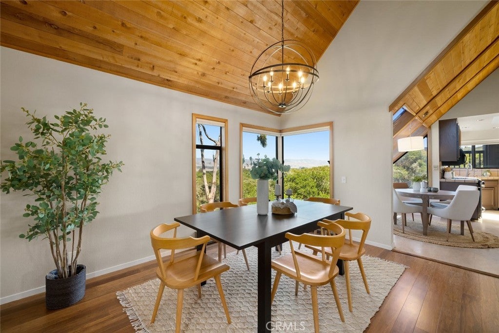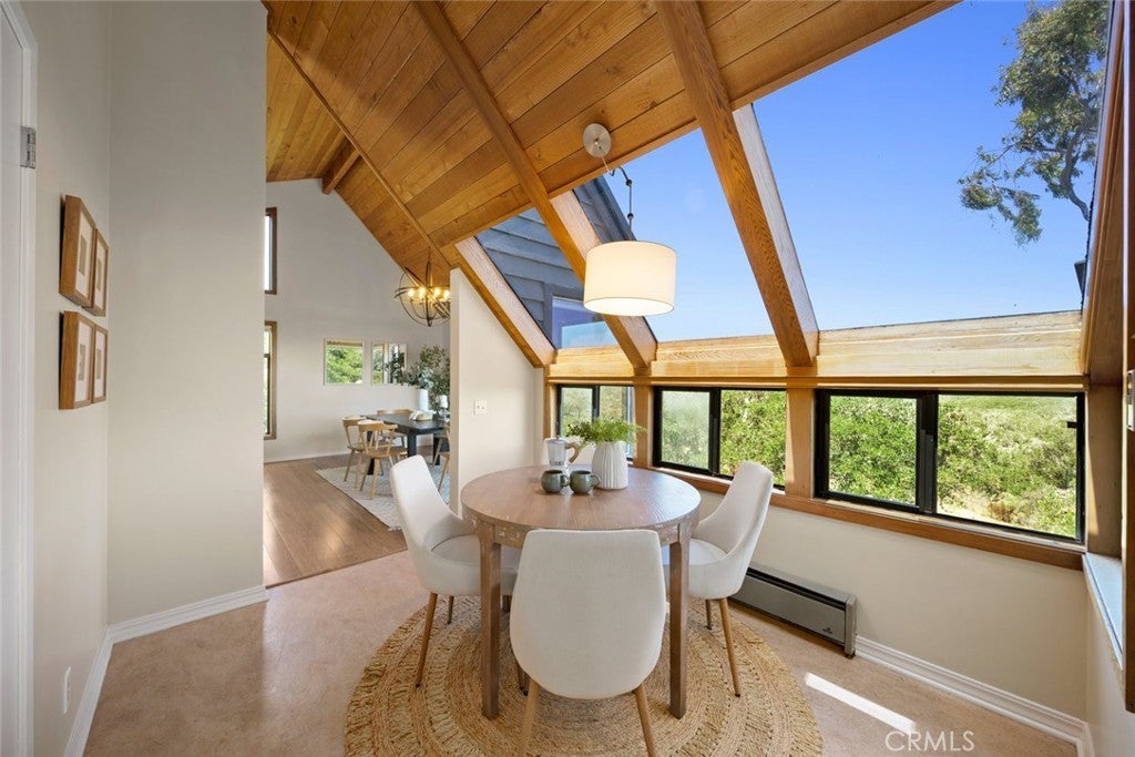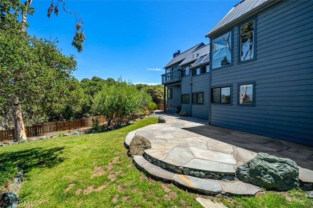 Best kept secret in Los Osos!!! Situated on over 1.4 lush acres in a hidden, coveted neighborhood, this tri-level 2,458-square-foot home showcases sweeping views of rolling hills from Morro Bay to San Luis Obispo. Thoughtfully designed to capture natural light and frame its stunning private natural surroundings, the home blends character, functionality, and charm. Entering on the second level, a double-door entry opens into a bright foyer with picture windows and sliding panels that invite natural light and cross-breezes. The adjacent laundry room includes a folding counter, generous storage, and a tiled entry with mudroom potential, leading directly to a spacious two-car garage. A fourth bedroom completes this level. The third level offers a formal living and dining area featuring soaring wood ceilings, a decorative chandelier, and panoramic vistas. The spacious eat-in kitchen continues the spectacular western views and is equipped with a gas stove, vent hood, microwave, refrigerator, dishwasher, and ample cabinetry accented by beautifully tiled countertops. A coffee bar counter and pantry make this space ideal for both casual mornings and entertaining. A cozy family room down the hall features a fireplace and exquisite views—perfect for morning yoga or evening relaxation. A half bath completes this level. The first level is home to the serene primary suite, offering direct backyard access, a walk-in closet, and a luxurious ensuite bath with custom tilework and a walk-in shower. Two additional bedrooms and a full bathroom complete the lower floor. Outdoors, enjoy a flagstone patio, mature landscaping, and a private backyard retreat. For horse enthusiasts or hobbyists, the property includes a storage shed, horse shelter/hay barn, and pasture potential—adding to its unique appeal. The backyard is adjacent to hiking trails and the majestic Oaks Preserve. Additional features include owned solar, skylights throughout, a standing seam metal roof, and exceptional privacy—bordering over 80 acres of protected state reserve. This is a rare opportunity to own a thoughtfully designed, one-of-a-kind home in the heart of scenic Los Osos, where inspiring views and limitless potential await.