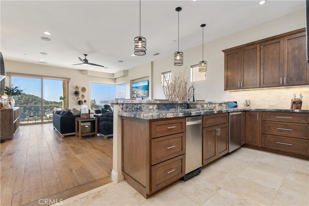 Perched in one of the most coveted enclaves on California’s Central Coast, 2865 Rock Wren Lane is a rare gem that blends coastal luxury with serene seclusion. Nestled within the exclusive, gated, and guarded community of Kingfisher Canyon, this home offers breathtaking views of rolling hills, valleys, and the Pacific Ocean. The community is golf-cart-friendly and features nearly 5 miles of hiking and walking trails with beach access. Built with high-end construction and luxurious finishes, this residence exemplifies refined coastal living. From the moment you arrive, you're greeted by impeccable landscaping and impressive curb appeal. The gated front courtyard offers a private outdoor space with turf, garden beds, a gas fireplace, and French doors that open into the dining area. Step inside to discover an open, light-filled interior with soaring ceilings, elegant design, and panoramic views throughout. The entry level is designed for seamless living and entertaining, featuring an open floor plan with a spacious living room, a view deck, and a kitchen that connects effortlessly to the dining room. The kitchen boasts stainless steel appliances, abundant cabinetry, a large breakfast bar, walk-in pantry, and generous counter space. Custom features include recessed blinds, mitered corner window, art display niches, and chambered for an elevator. The entry-level primary suite features a grand sitting nook with a picture window framing ocean views. The ensuite bath includes stone finishes, a jetted tub, frameless shower, dual vanities, a makeup station. Downstairs offers a large secondary living environment with its own private, large, outdoor deck. The spacious den offers a secondary family room with a sliding glass door providing opening to the deck and allowing light to flood the room. Two spacious guest suites with plethora of lights, walk in closets, large guest bathrooms with stone finishes for an elegant design. There is a spacious bonus room located at the back of the den. It also provides a large storage room under the stairs. This home is where elegance meets ease and is located 10 minutes from San Luis Obispo, 10 minutes to Pismo Beach and a short 3 mile walk to downtown Avila Beach! Come experience the best of California coastal living in this thoughtfully designed, beautifully appointed home.