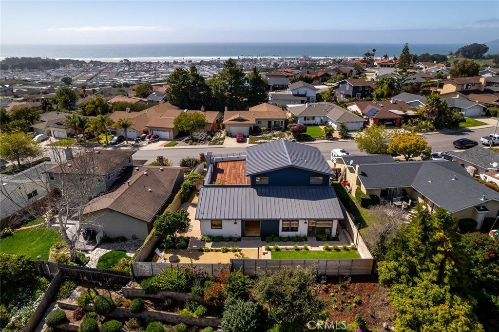 Welcome to Surf Street by PACK Design Group - a stunning coast-modern masterpiece perched several hundred feet above the Pacific Ocean with sweeping views of Pismo Beach and beyond. This bespoke Pacific Estates residence has been meticulously designed by acclaimed California designer, Jon Couch (Associate AIA) of PACK Design Group, and thoughtfully reconstructed from the ground up with completion in April 2025. This spacious two story home consists of three bedrooms, bonus den area, three full bathrooms, and an oversized rooftop deck with whitewater views. Upon entering the custom solid-wood pivot front door you are greeted by a cozy wood clad foyer that opens up to the living, dining, and kitchen. The ground floor also consists of a secondary bedroom suite, guest bedroom, den, laundry room, and two car finished garage with epoxy flooring. The vision of this home was to seamlessly integrate indoor and outdoor living with the usage of massive wood-frame sliding doors and windows that secretly pocket into the walls to completely disappear from your view. The result is a unique blend of thoughtfully crafted outdoor spaces merging perfectly into light filled indoor spaces. The entire second floor is an opulent private sanctuary featuring the primary suite and an attached 460 square-foot rooftop deck with ipe hardwood decking, gas burning outdoor fireplace, and dramatic views of the Central Coast. The landscaping around the entire site is inspired by the greenery found in Cornwall, England with coastal grasses, low line plants, and palms. The entire home is outfitted with top of the line materials and fixtures including: engineered white oak flooring, genuine Taj Mahal stone countertops, solid wood cabinetry, luxury smart appliances by Fisher & Paykel, Hansgrohe plumbing fixtures, Schoolhouse lighting, custom tilework throughout, ACX plywood clad foyer with custom peg-board wall, copper clad hood, recessed baseboards, level 5 smooth drywall, central heating & cooling system, genuine accoya wood exterior siding (50 year warranty), standing seam metal roof, extra insulation for efficiency & sound in roof/walls/flooring, contemporary wood clad windows by Weathershield, custom solid core pivot door with Fritz Jurgens hardware, new 200 electrical amp panel, new plumbing (pex + copper), new foundation, and more. This is truly one of the most architecturally unique custom home offerings to have ever publicly hit the for-sale market in Pismo Beach.