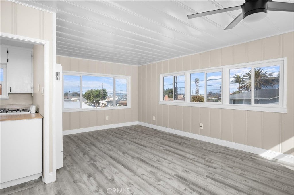 Remodel complete with Section One termite clearance including fumigation certificate. This home offers several options. Currently two one bedroom units with an additional art studio/bonus unit and a separate laundry room with third bathroom. Has recently been updated inside and out with new flooring, paint, windows, ceiling fans and heating. Downstairs features new granite kitchen counters and gas stove with a quiet landscaped yard for outdoor enjoyment. Upstairs is open and bright. Spacious sunny deck with ocean view . Great location convenient to restaurants, market and park.