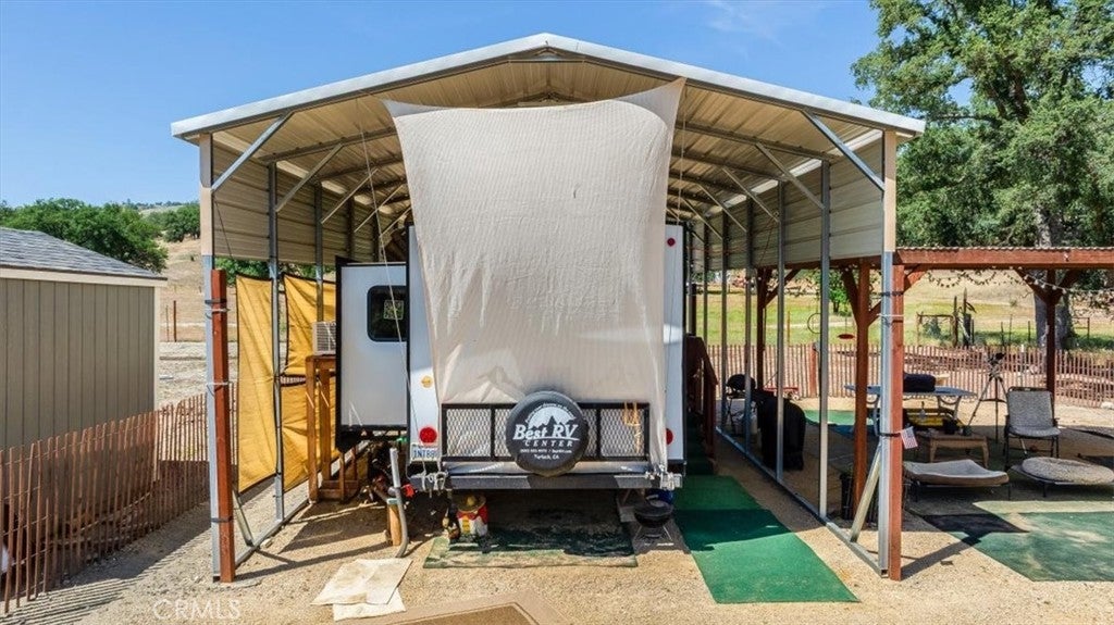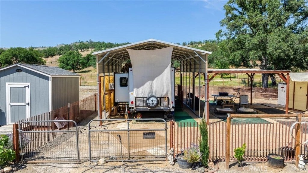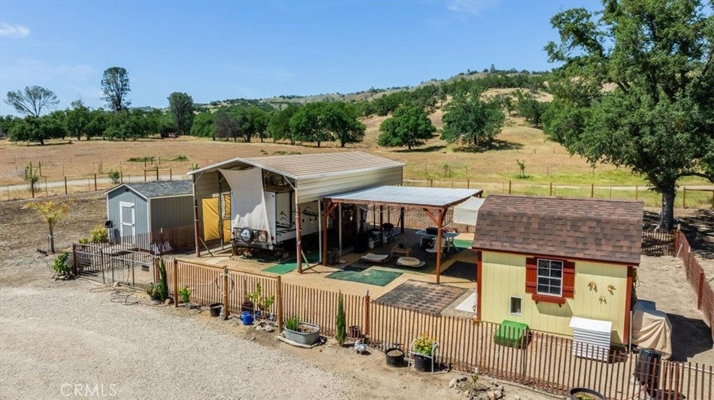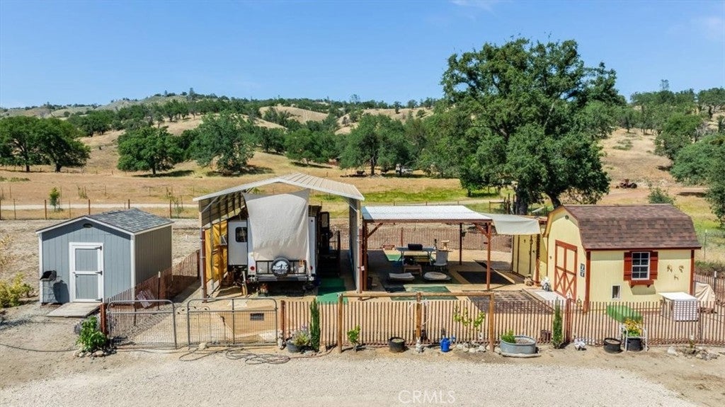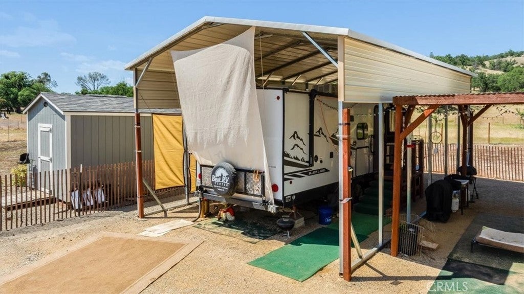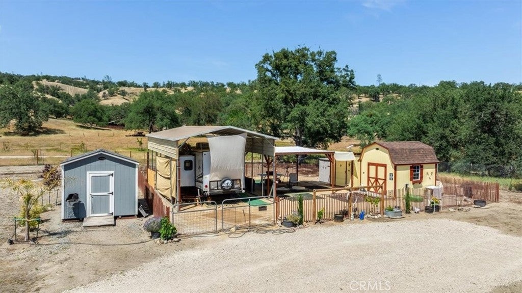 Rancho no gottem? Here's an opportunity to live amongst large ranches but only have to maintain 1 acre. The property is fenced, has a well and water storage, has a newer septic system large enough to accommodate a 3500 sq ft house with two leach fields. Electrical power on site. Full RV hook-ups. Equipped with an extra tall metal carport, RV awning and pergola. There are 4 sheds on the property including a "She Shed" that is drywalled, insulated and has power and AC. The price includes the 2022 Forest River Cherokee travel trailer. The beauty of this valley with its ancient Oaks and abundant wildlife is beyond description. It's formal address is San Miguel but is only about a mile from the quaint town of Parkfield. There are plans to build an ADU that were approved but have expired. There are several small fruit trees, table grapes and olive trees. This is a perfect spot to enjoy a little peace and quiet, build a house or keep as is for your weekend pleasure. Owner will carry with 50% down!!