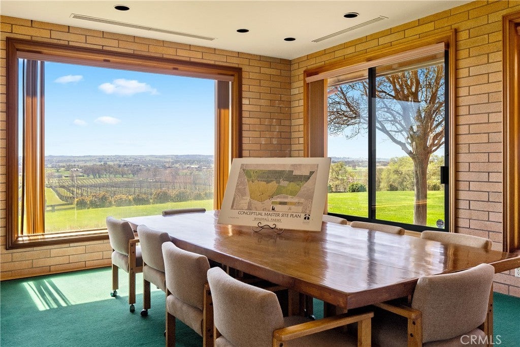 WORLD CLASS CENTRAL COAST DEVELOPMENT OPPORTUNITY WITH POSITIVE CASH FLOW. With 76 approved lots and huge water resources from the Huero Huero creek (see documents), the unique scale and quality of production at Windfall Farms along with existing building infrastructure presents an excellent opportunity for the development of a brand name winery production facility and resort style retail tasting room by the right buyer. The extraordinary opportunity to develop multiple residential parcels and vineyard estates with infrastructure in place or nearby makes this a very unique offering in the highly desirable Central Coast of California with huge upside potential. Windfall Farms currently operates as a cashflow positive premium wine grape vineyard business. The 387 acres of grapes (348 acres producing, 39 acres newly planted) are predominantly planted to dry red varietals that the Paso Robles AVA is known for and consistently produce high quality grapes. Windfall Farms was created as a first class Thoroughbred race horse facility with stunning Kentucky style equine facilities including a 6 1/2 furlong race track with room for a professional polo field in the middle surrounded by large paddocks. The beautiful owner's residence is finely built with six large bedrooms and baths, together with offices and conference rooms, large kitchen and dining/living area and a grand game/media room. There are several smaller homes on the property. The property has 4.5 miles of paved roads internally, accessing all of the primary buildings. Electric service within the property includes 480V 3-phase power to the shop and the operational wells throughout the property. There are a total of nine permitted septic systems on the Windfall property designed to serve the individual needs of each of the main buildings and incumbent housing. The property currently has four operating wells, and three drilled/bored/cased wells with a total capacity of over 7,000 Gallons Per Minute (GPM). A main water line connects all the wells together, with sub-mains servicing each of the vineyard blocks. Two of the operational wells are powered by electric and natural gas, although electric is at the wellhead. The depth of the Paso Robles formation varies over the basin and Windfall sits above a very deep depression.