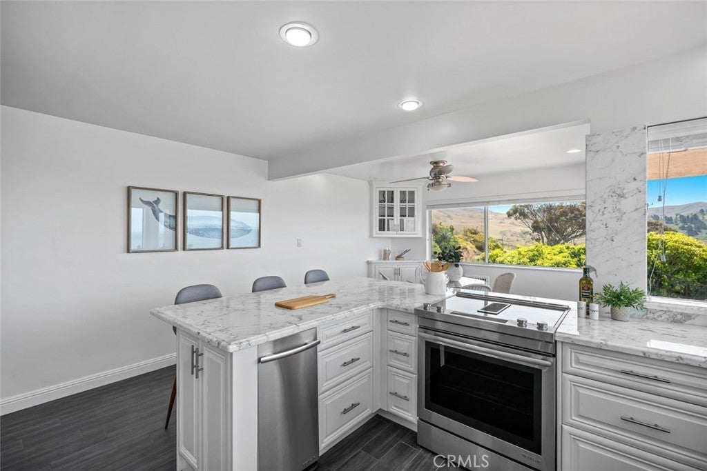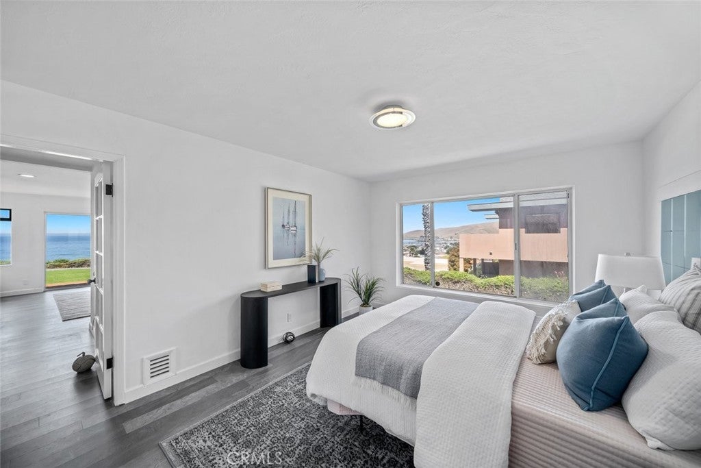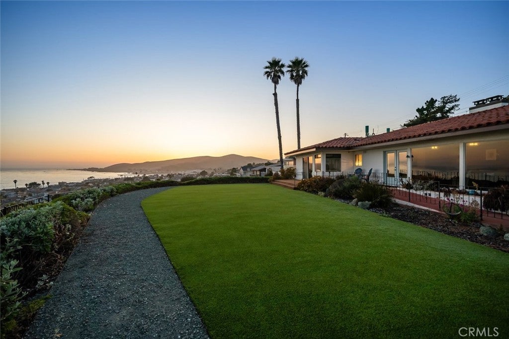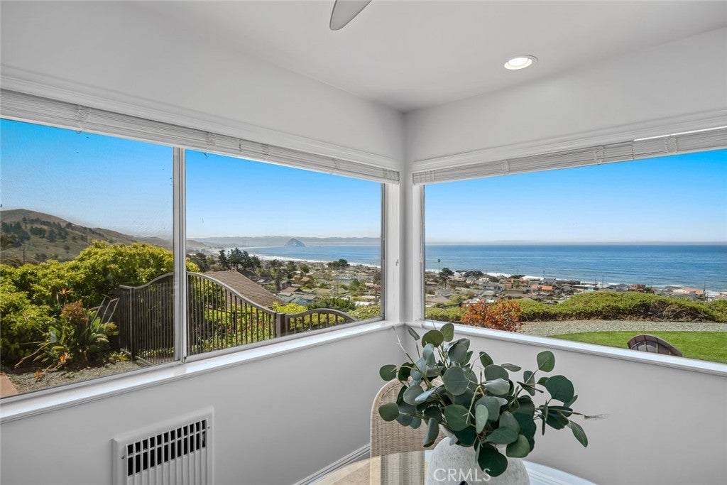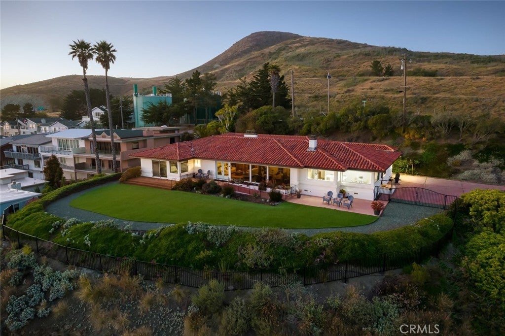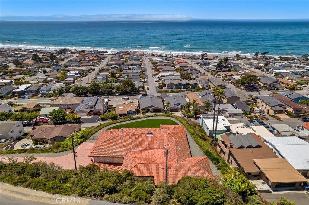 New price! Experience the very best of coastal California living in this exceptional single-level home perched on an oversized 0.6-acre lot in the heart of Cayucos. With breathtaking panoramic views of the Pacific Ocean, coastline, and iconic Morro Rock, this spacious 3,337± sq ft residence offers an unmatched combination of luxury and privacy. Step inside to a bright and airy layout featuring three bedrooms, three bathrooms, a bonus room, and a home office. The kitchen boasts white cabinetry, marble countertops, a breakfast nook, and picture windows that frame the stunning ocean and Morro Rock views. Relax and unwind in the elegant living and dining areas, both showcasing expansive coastal vistas and a cozy wood-burning fireplace. The bonus room adds an element of fun with a bar, pool table, fireplace, and built-in bed nook. The primary suite is a true retreat with panoramic ocean views, backyard access, dual closets (including a walk-in), and an en suite bathroom with marble finishes. Two additional bedrooms also feature generous layouts and ocean views. Outside, the oversized lot offers endless potential with five legal lots on two APNs; perfect for expansion, gardening, or even subdivision (buyer to verify). The oversized four-car garage/workshop includes insulated walls, an office with ocean views, and ample space for hobbies or storage. Additional highlights include a dedicated home office with built-ins and ocean views, a generous utility room with pantry storage, a sink, and secondary refrigerator, multiple bathrooms with updated tile and marble finishes, French doors leading to a private backyard, and luxury vinyl plank and tile flooring throughout. This is a rare opportunity to own a one-of-a-kind property with unparalleled views, generous space, and incredible potential, all just minutes from downtown Cayucos and the beach.