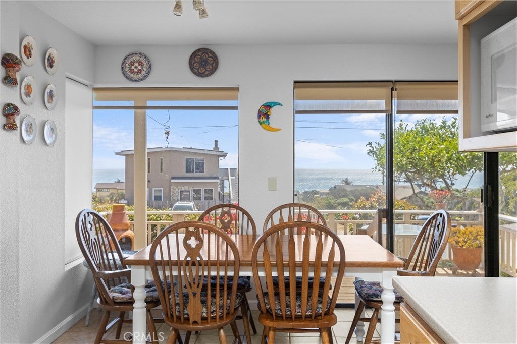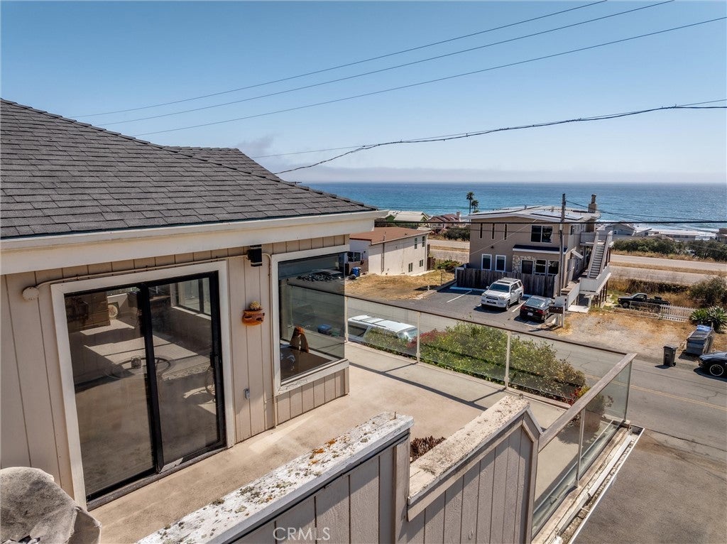 Vibrant Coastal Living with Expansive Views. This unique upslope property offers a rare combination of versatile living space and captivating Pacific Ocean vistas. Thoughtfully designed on two levels, the home maximizes natural light and views with extensive windows and multiple view decks. The lower level features a well-appointed kitchen with quality appliances, solid surface countertops, fine cabinetry, and tile flooring. Adjacent are the dining area, two comfortable bedrooms, a 3/4 bath, and access to a sheltered rear patio—ideal for indoor-outdoor coastal living. Upstairs, the spacious primary suite impresses with open beam ceilings, a private 3/4 bath, and a large deck showcasing panoramic ocean views. Additional highlights include an attached garage plus extra off-street parking. The property benefits from a unique setting across from lower-elevation land and an unused street, preserving future view corridors. Perfect as a full-time residence or a weekend retreat, this home combines location, design, and quality—offering a rare opportunity along this coveted stretch of coast.