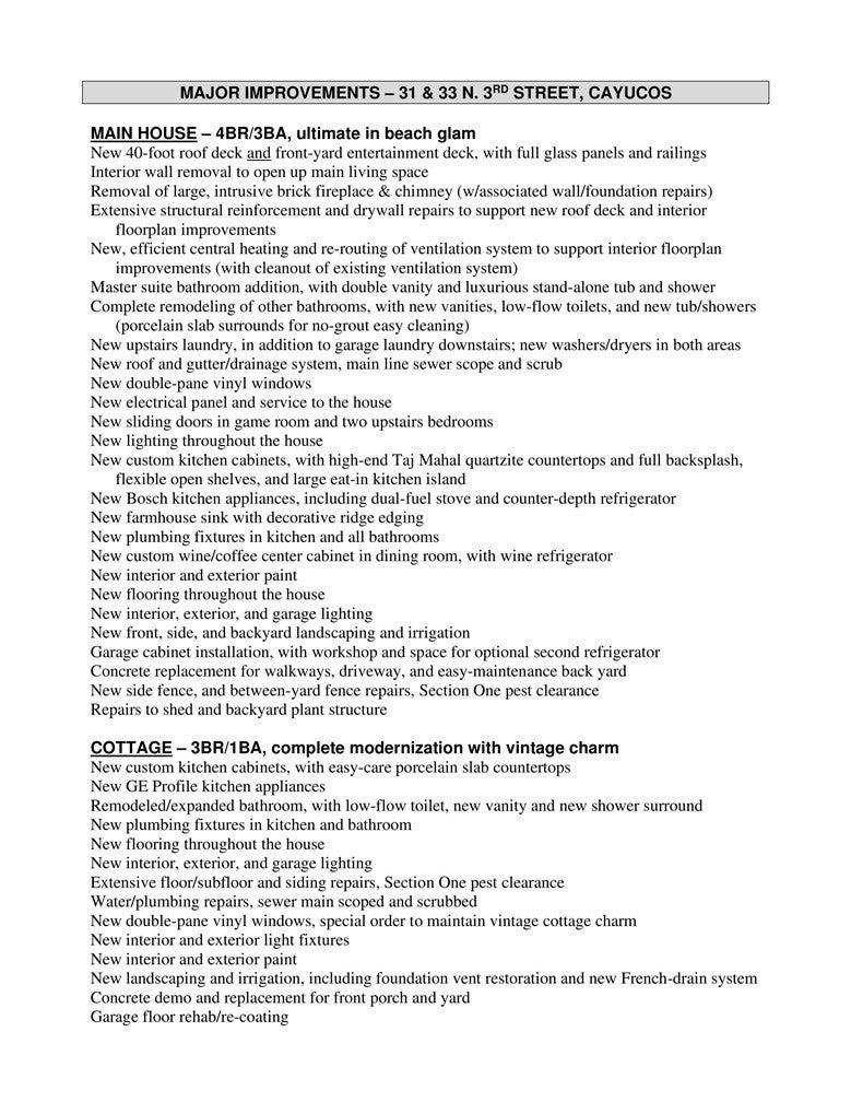 Two single family homes! Live the Cayucos Coastal Dream on California’s Central Coast! Welcome to 31 & 33 N. 3rd Street, a rare opportunity to own two fully rebuilt ocean-view homes totaling approx. 3,100 sq. ft., just steps from the beach and Cayucos Pier. Both homes are listed under one parcel—31 N. 3rd Street—but each has separate meters and addresses, offering flexibility for luxury coastal living, multi-family use, or income potential. Wake up to the sound of waves, stroll down for morning beachcombing, hike coastal trails, or bike scenic Highway 1. Spend afternoons paddleboarding, sailing, or surfing, then unwind with sunset walks, local dining, and wine tasting along the Central Coast. The main 4BD/3BA home exudes modern elegance and solid redwood craftsmanship, featuring Taj Mahal quartzite counters, a full Bosch appliance suite, and a built-in wine/coffee bar. Relax on the 40-ft rooftop deck enclosed with full-glass panels or gather on the new front deck with ocean breezes. Every detail shines—new windows, flooring, lighting, and upgraded central heating, plus dual laundry areas and a finished garage with cabinetry, workspace, and extra storage. The second 3BD/1BA home mirrors the same quality with MasterCraft cabinetry, matte porcelain slab counters, updated plumbing and electrical, and its own laundry—perfect for guests, multigenerational living, or rental income. County Planning notes it may be eligible for short-term rental licensing (buyer to verify). Set on a 7,544 sq. ft. landscaped lot with new fencing, irrigation, and concrete, each home has its own garage and driveway. Stroll to Sea Shanty, Hidden Kitchen, Lunada, Restaurants, Cayucos Market, the Farmers Market, Morro Bay, Cambria, and Paso Robles wine country. 31 & 33 N. 3rd Street delivers the best of luxury coastal living—where every day feels like a vacation.