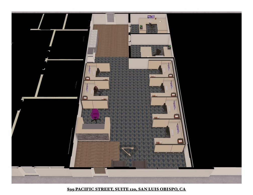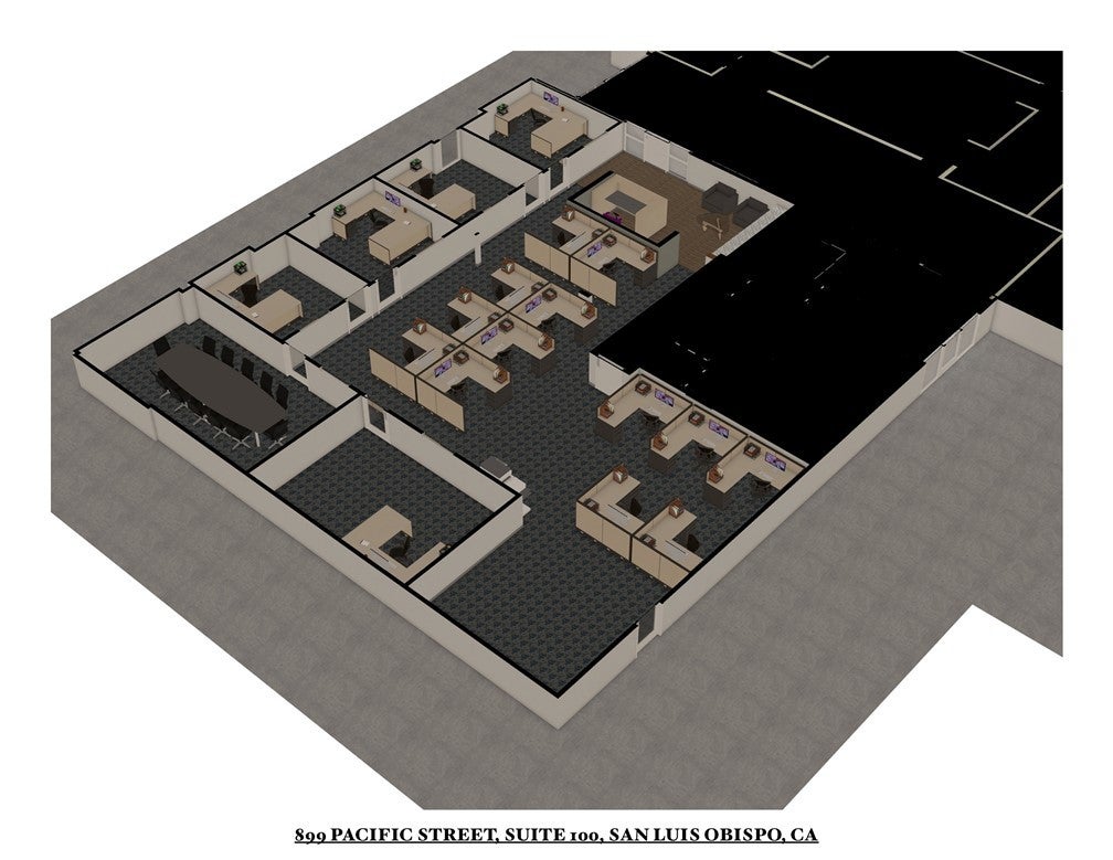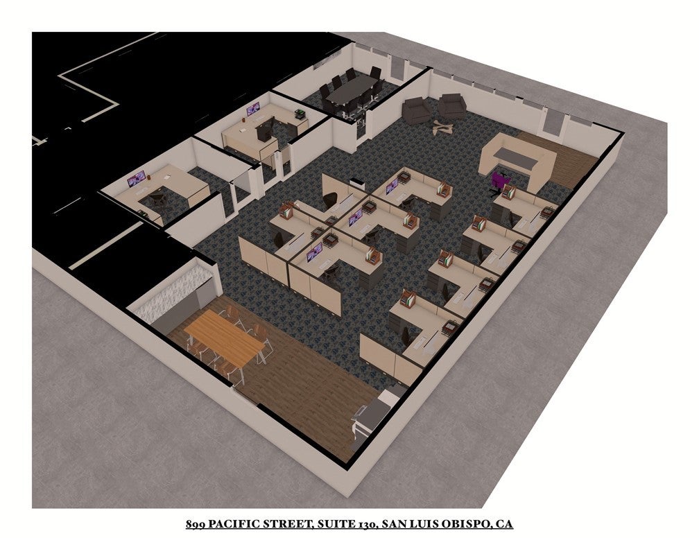 Three newly remodeled suites in the heart of downtown San Luis Obispo with on-site parking. Suite 100, at 3,635 SF, consists of four private offices, two large conference rooms, a kitchenette and open space. The entrance to the suite can be accessed from both Pacific Street and the rear parking lot. Suite 120, at 1,297 SF, consists of two private offices, open space, a kitchenette, a private restroom, and vaulted ceilings. There is a storefront entrance facing Morro Street and a secondary entrance off the main parking lot. Suite 130, at 1,917 SF, consists of two private offices, a conference room, a kitchenette, a private restroom, and vaulted ceilings with skylights. There is a storefront entrance facing Morro Street and a secondary entrance off the main parking lot.