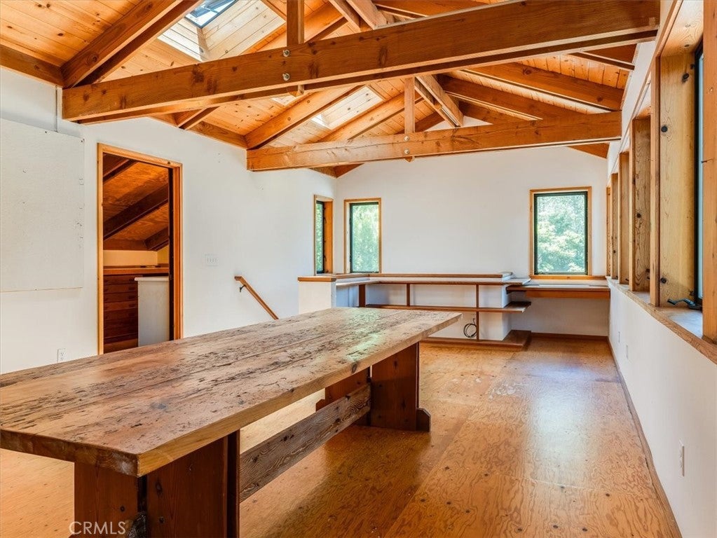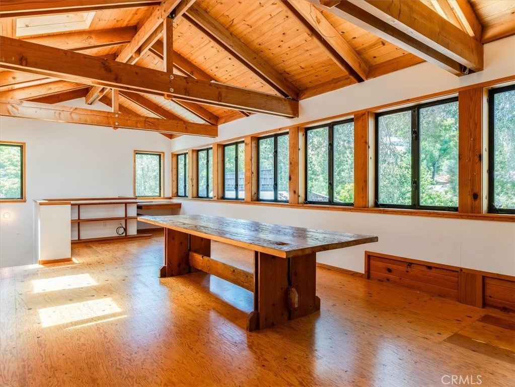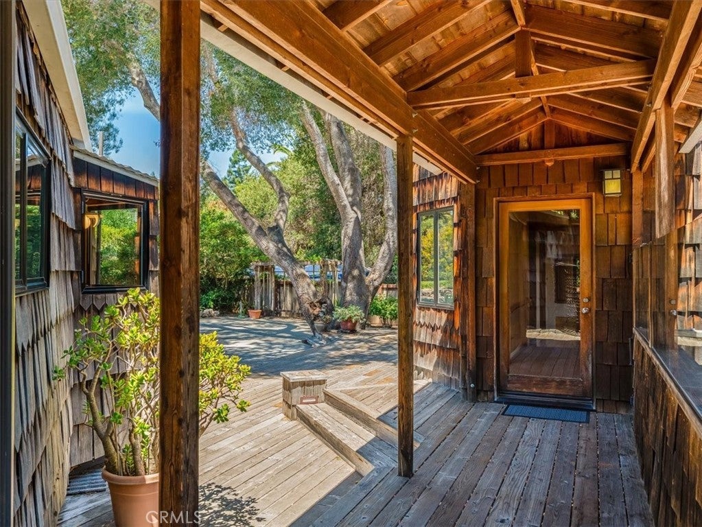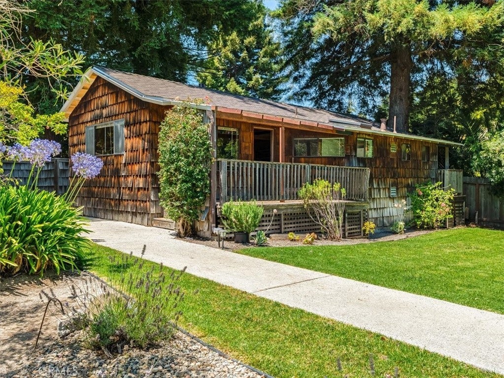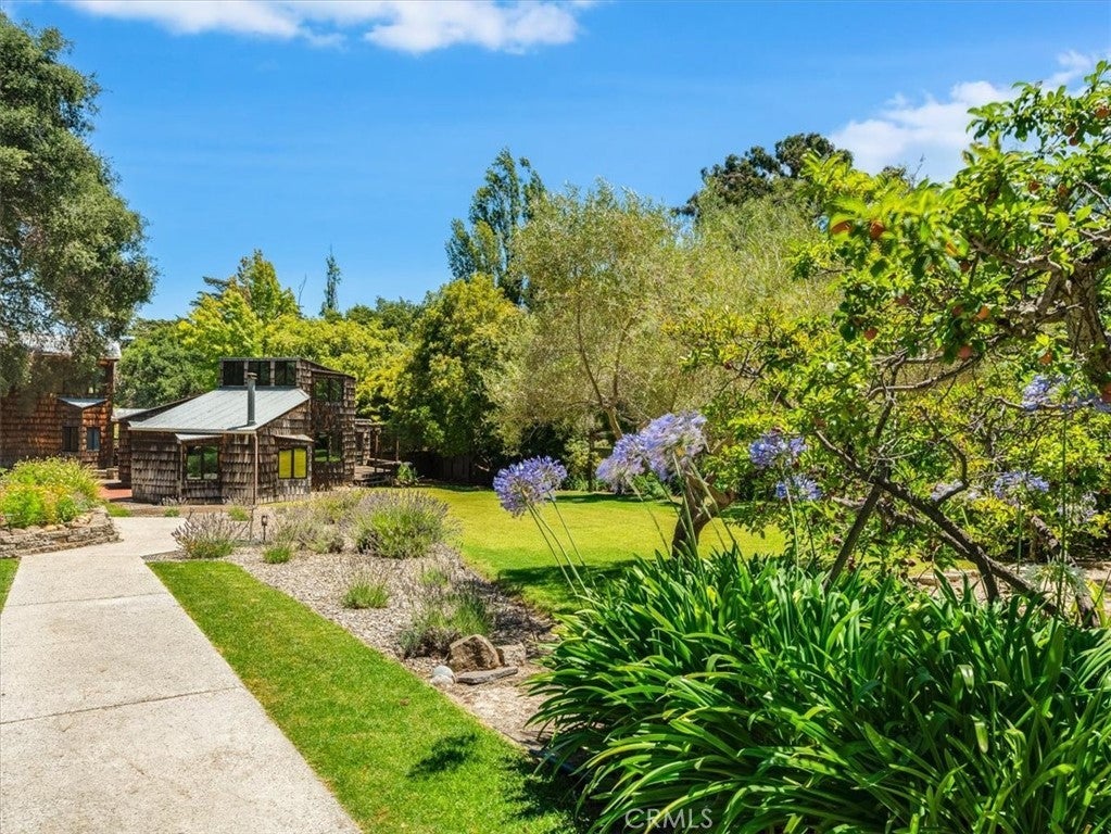 A generous and secluded gem, this late mid-century “Sea Ranch” style retreat property will transport you to the sensation of Big Sur. Designed and built by the visionary owner, the parcel includes a guest house, detached garage “barn,” pumphouse, and 1940’s (est.) greenhouse with glass panes. The main house has open beams, metal work by local artisans, library loft. The detached wing includes primary bedroom with en suite and also has an extraordinary upstairs studio with custom plumbed darkroom. The exterior of the structures is clad with sugar pine shakes. The guest house has an open frame ceiling, with original wood flooring and charming loft area, and includes a ¾ bath. The 50-foot heated lap pool and expansive lawn areas, are remarkable highlights. Cerro San Luis Mountain frames the horizon to the west and the Santa Lucia Range to the east. The bordered and terraced garden sections, with repurposed concrete edges are an oasis for your green thumb. Glorious established fruit trees include fig, plums, and citrus varieties including lemons, mandarins, oranges, and lime. All this delightful peace and privacy is within the Anholm district, and less than a mile to the heart of downtown San Luis Obispo. Abundant area for onsite and off-street parking. Location is also ideal for access to sought-after schools, proximity to recreation and open space. Per owner, main house and bedroom wing have 2638 sq ft, guest house has 744 sq ft.