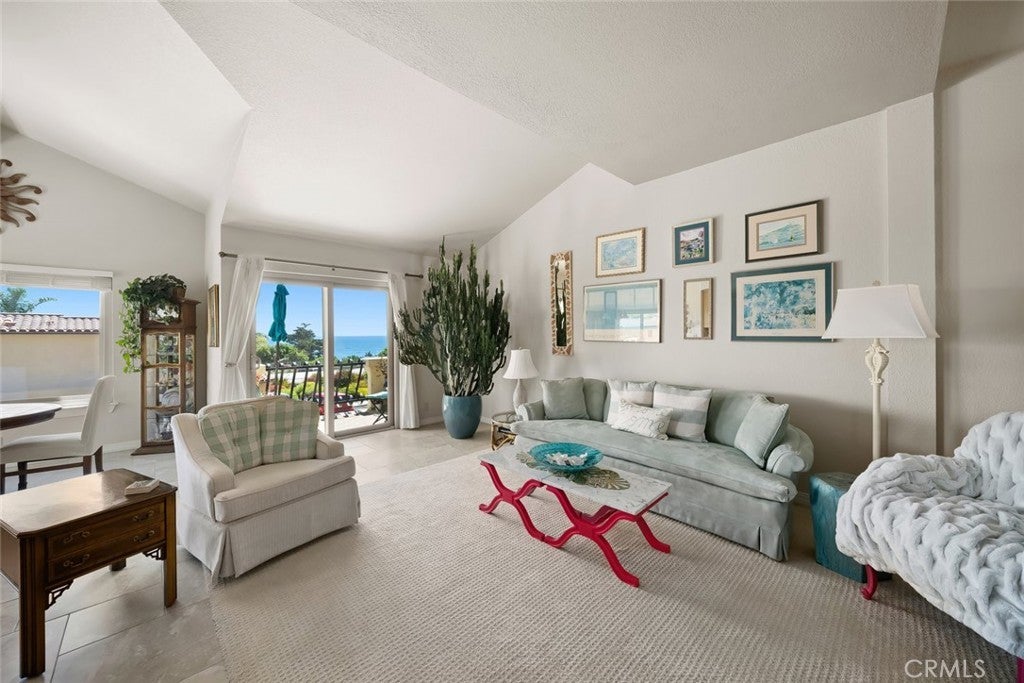 Ready for immediate move-in! Beautifully upgraded and remodeled, this ocean-view condo is located in the highly desirable gated community of Villa Antigua in Spyglass Ridge. An end-unit positioned near the front of the neighborhood, offers sweeping ocean and sunset views from nearly every room. With extra guest parking just outside, this residence delivers a blend of privacy, style, and coastal charm. The main level reveals a bright, open interior where natural light and Pacific vistas take center stage. The living room opens to a private deck, creating a seamless indoor-outdoor flow—ideal for evening cocktails or quiet mornings. The dining area is wrapped in windows, capturing the ever-changing coastal light. A thoughtfully designed kitchen features granite countertops, creative tile backsplash, recessed lighting, and stainless steel appliances, including a range, microwave/hood, refrigerator, and dishwasher—all framed by cherry cabinetry and sleek finishes. A bonus elevated loft space offers the perfect escape after beach days or hosting friends. The primary suite, is a true retreat. Corner window views, dual-sink vanity, walk-in tiled shower and custom closet organizer. A second bedroom and full bath complete the upper level. This home features a two-car attached garage, generous storage, and a location just minutes from local shopping, dining, renowned wineries, and award-winning beaches. HOA fees cover insurance, exterior building maintenance and landscaping. This is your opportunity to own a stunning high-style residence designed for those who value architecture, setting, natural light and ocean views.