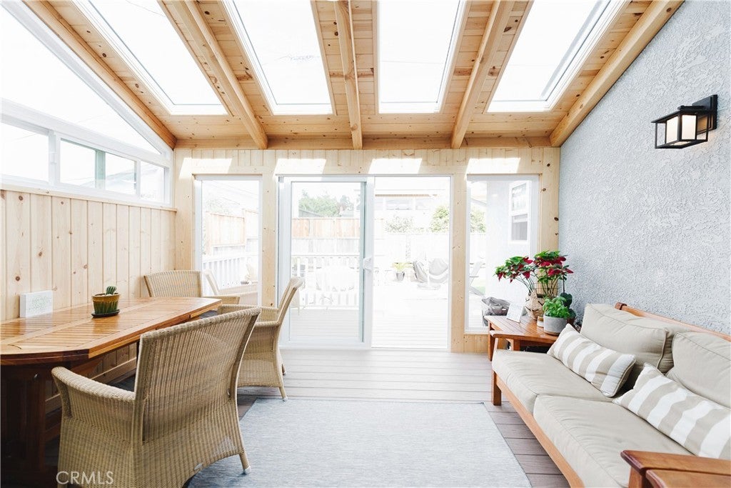 Enjoy iconic views of Morro Rock and the ocean from this top to bottom fully renovated move-in ready home in prestigious Morro Heights. This home features a main-level primary suite and 3 more bedrooms upstairs, with a total of 2.5 baths. The walls of glass and beautiful Andersen sliding French wood doors in the dining area allow for views of the ocean from the chef’s kitchen. The deck off the kitchen and dining is perfect for morning coffee and evening cocktails while you take in the views. The kitchen includes custom cabinetry, Viatera countertops, a KitchenAid 5 burner induction cooktop, Sub-Zero refrigerator, and other top of the line appliances. The living room is centered around the custom-tiled fireplace and is open to the dining area, creating the perfect entertaining environment. The flooring is a beautiful real wood Mediterranean Cannes hardwood throughout the entire house. Around the corner from the living room is the cozy family room with custom wood built-in desk and direct access to the sunroom / bonus area and backyard. The large main-level primary suite features vaulted ceilings and exposed beams, as well as a sitting area. The wood beam carries into the primary bath with dual Cambria Quartz counters and built-in bathtub, custom tile shower and radiant heated floors. The 3 good sized-upstairs bedrooms also offer views as well as wood flooring and ceiling fans. One upstairs bedroom is soundproofed professionally with custom built-in cabinetry and can be used as a music studio, entertainment room or yoga space. The upstairs bathroom is well-appointed and also has radiant heated floors. All the windows, sliders and doors are new as well as the mechanical systems. Below the main living area you have direct access to a 3-car finished garage with storage shelves, cabinets and an electric car charger. The beautifully landscaped backyard has artificial turf and flagstone pavers. The front deck is LED-lit with automatic dusk-to-dawn lighting. This turnkey home on a quiet street with nearby hiking trails and public golf course combines modern comfort with timeless coastal charm.