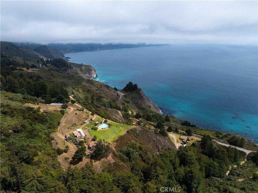 Tucked a half mile off Highway 1 and just 10 miles south of Julia Pfeiffer Burns State Park, this private hilltop retreat captures sweeping panoramic views of the Pacific Ocean and surrounding Big Sur wilderness. This offering represents a 50% ownership interest in approximately 32 acres of shared land, with exclusive use of multiple thoughtfully designed structures and amenities. The two-story 1,500 sq ft main cabin includes 2 bedrooms, 2 bathrooms, open living space with full kitchen, laundry facilities, wood-burning fireplace, and wraparound decks overlooking the ocean. A detached 900 sq ft guest duplex provides its own kitchen, living area, and bathroom. Additional features include a separate yoga studio with kitchenette and bath, solar-heated infinity pool, oversized hot tub, outdoor kitchen, lush gardens, and orchards with avocado, apple, and lemon trees. This off-grid sanctuary offers extraordinary Big Sur living with the benefits of co-ownership.