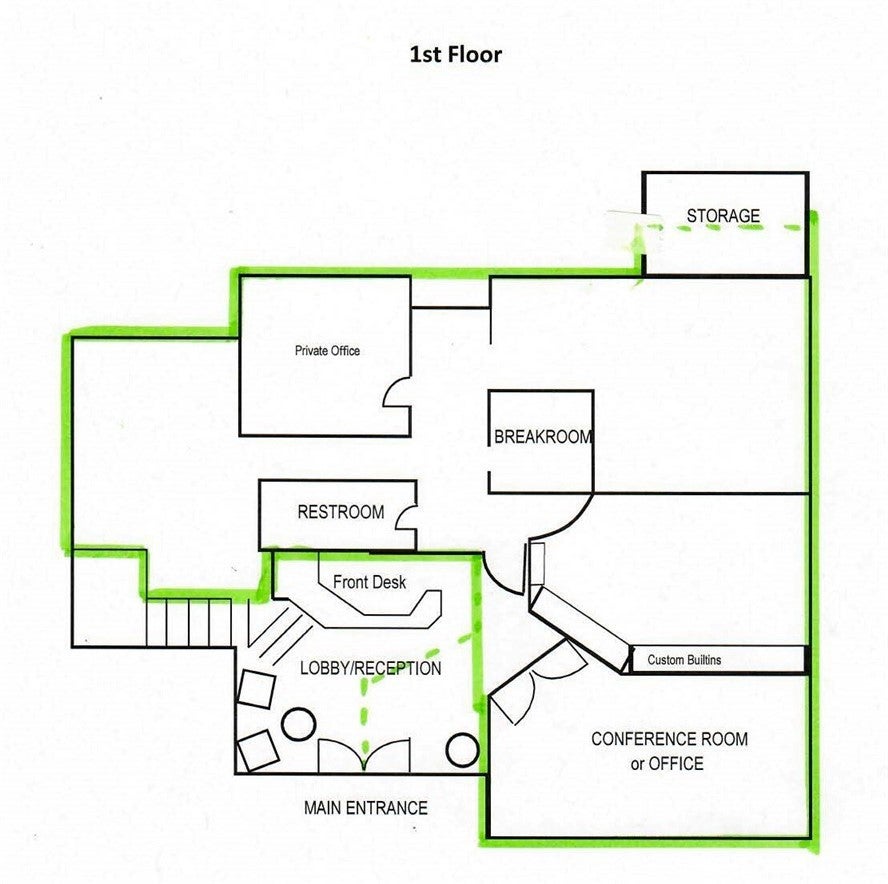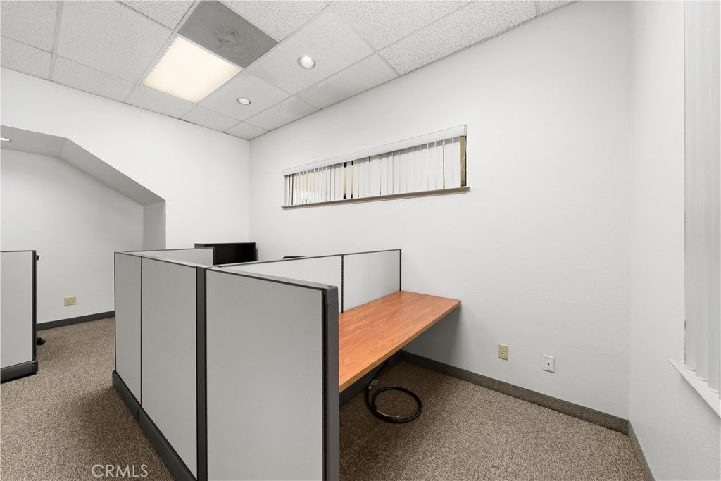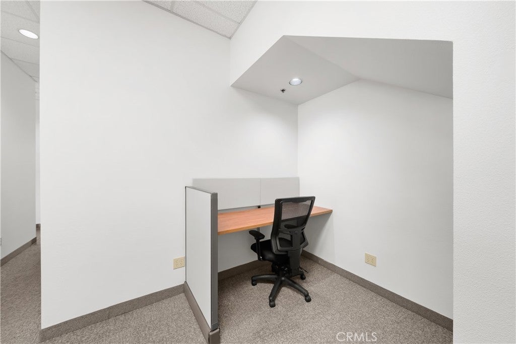 A ground floor office suite with on-site parking, a private office, open work spaces, a kitchenette, and a conference room. Excellent freeway access and a short walk to the downtown core. There is non-metered parking on the street and several restaurants are within walking distance.