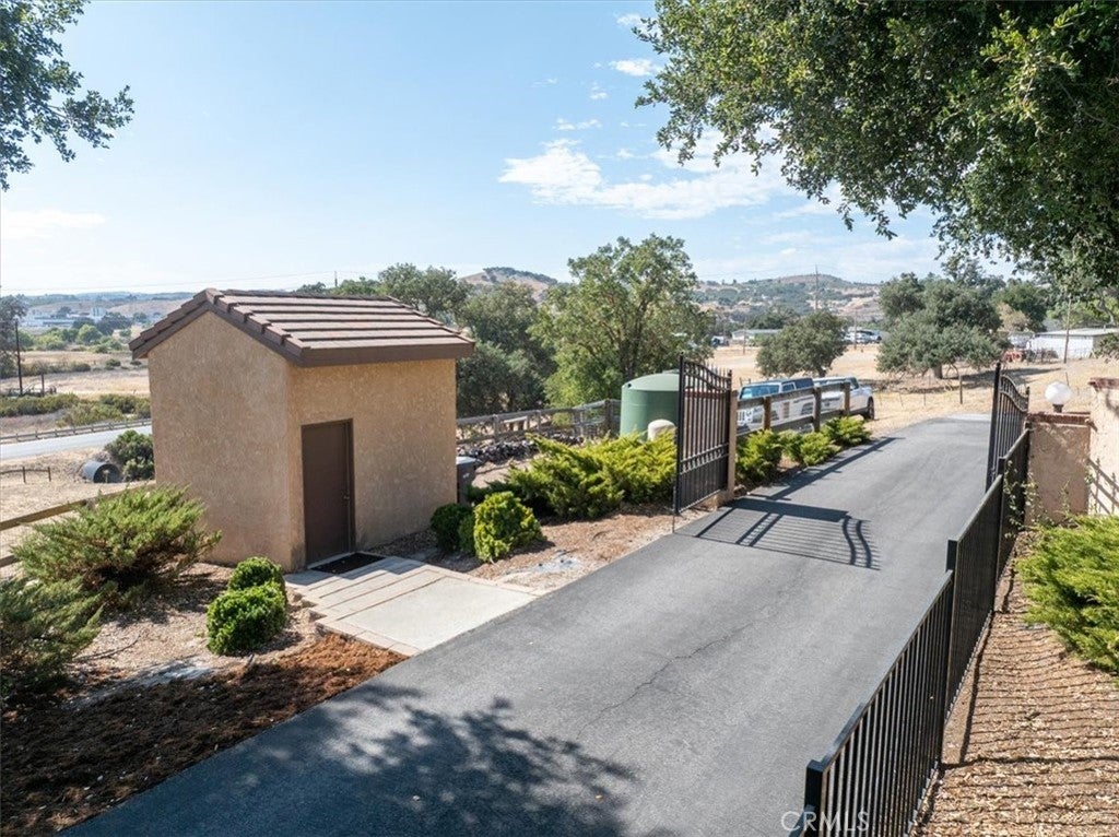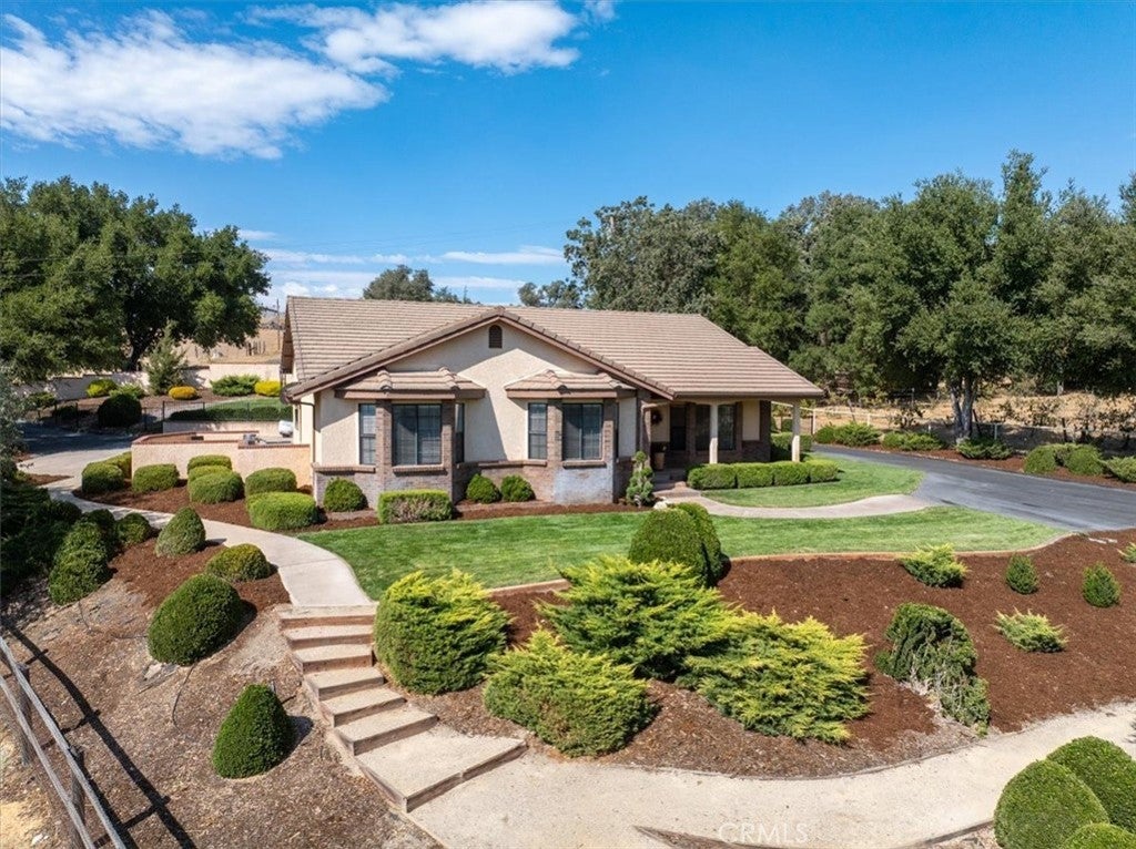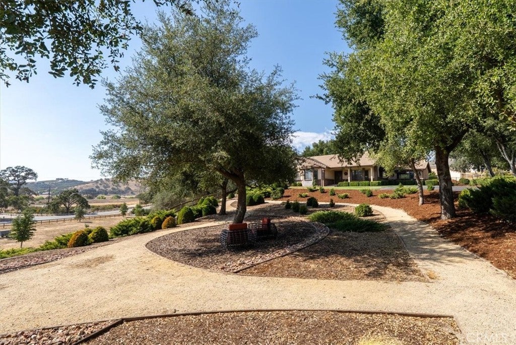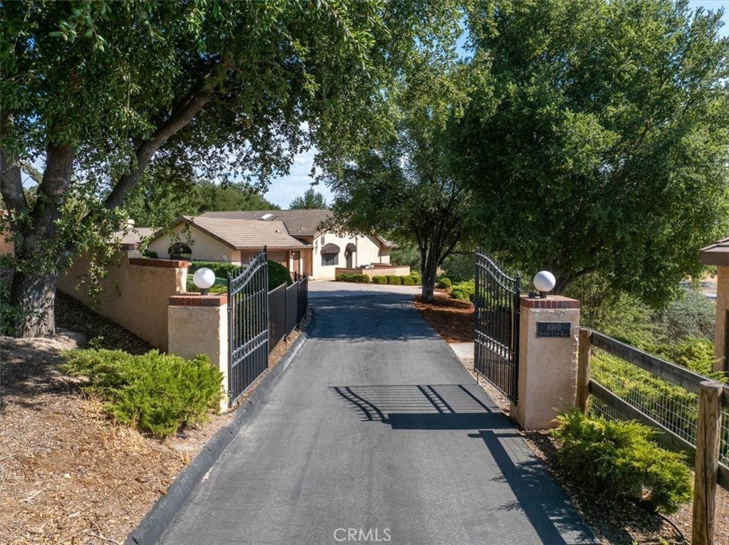Welcome to 1010 Spanish Camp -An exceptional gated estate nestled in one of Paso Robles’ most coveted locations. Set on 3.73 oak-studded acres, this residence is a rare opportunity to enjoy the wine country lifestyle while just minutes from downtown Paso Robles. This single level 3 bedroom, 3 bath home spans 2,328 sq ft of thoughtfully curated design. Expansive windows frame endless views while open living spaces with cathedral ceilings include both a living room and a family room, as well as a formal dining room with built-in cabinetry—all flowing seamlessly into a chef’s kitchen with stainless steel appliances, an eat-in dining area and 2 breakfast bars -perfect for gathering with family and friends. The primary suite is complete with a spa-inspired bathroom with double vanity, walk-in shower with glass surround, and separate water closet with soaker tub, as well as a custom walk-in closet, and a sitting area with a French door to the backyard- ideal for peaceful relaxation. Two additional bedrooms featuring custom-built closets with pull-outs offer space, comfort and convenience. This home’s amenities include an additional full-size bathroom with double vanity, a powder room, and a full-size laundry room with built-in cabinets. Step outside and the expansiveness of this estate begins to shine. Meandering walking paths lead you beneath a canopy of oaks where peaceful seating areas invite you to take in the tranquil surroundings. A seasonal creek adds charm to the landscape, with two private wells and a detached building that is suitable for a remote office. This property offers possibilities limited only by your imagination. Plant your very own vineyard or create an equestrian haven with space for horses, stables, and riding trails. Or simply enjoy the manicured, oak-studded grounds as a private retreat, where you can relax, entertain, and connect with nature in total privacy. The setting is both serene and convenient—close to downtown Paso Robles for world-class dining, wine tasting, and shopping, yet far enough to feel like a sanctuary of your own. With its perfect blend of charm, exclusivity, and possibility, 1010 Spanish Camp is more than a residence. It’s a property where dreams can take root, whether in the vines of a private vineyard, the rhythm of equestrian pursuits, or simply in the quiet moments of everyday life surrounded by natural beauty. Live the Paso Robles dream. Welcome home to 1010 Spanish Camp.