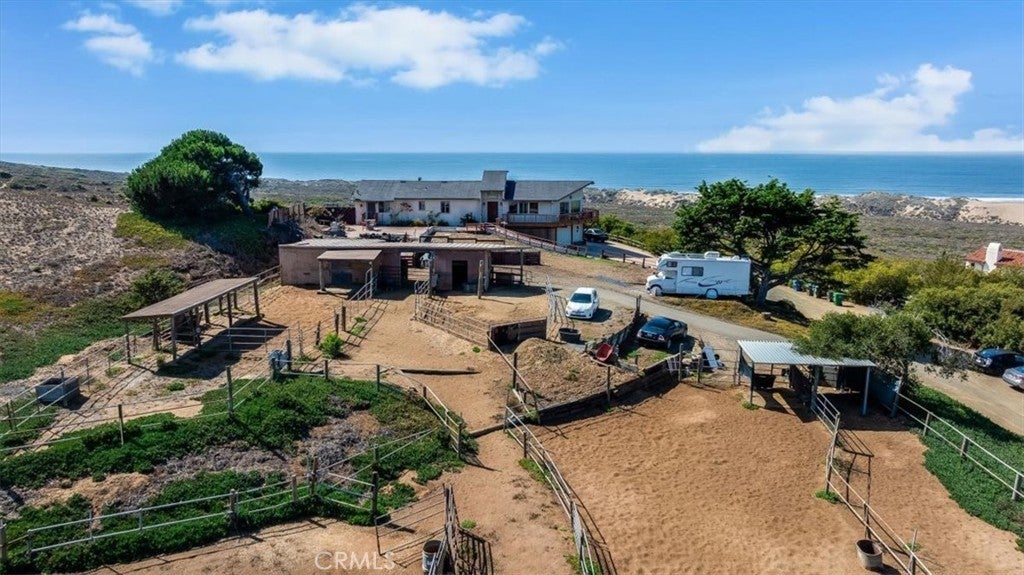 Costa Azul Ranch – An Equestrian Sanctuary by the Sea Perched high above the shimmering coastline beside Montaña de Oro State Park, Costa Azul Ranch is a rare coastal haven where horses and riders thrive amid breathtaking natural beauty. Set on a spacious 1.82 acres, this idyllic ranchette offers ample room for a fully equipped equestrian setup—including six pipe stalls with automatic waterers, a dedicated turnout area, pasture space, tack storage, and plentiful parking for trailers, guests, and gear. Every detail supports a seamless riding lifestyle. From your own fenceline, ride straight onto endless miles of world-class trails that wind through preserved parkland, rolling hills, golden dunes, and spectacular coastal bluffs. Venture down to deserted sandy beaches for unforgettable seaside rides, or explore the quiet backcountry paths that make Montaña de Oro one of California’s premier equestrian destinations. From its hillside vantage, the property captures sweeping 270-degree views of the Pacific Ocean, Morro Rock, and the back bay—panoramas framed by hundreds of acres of protected open space. Wildlife is a constant companion here, from soaring raptors and migrating whales to coyotes traversing the hillsides, creating a rare sense of connection to the land. Golden light bathes the ranch each day, followed by sunsets that paint the horizon with dramatic color—no two ever alike. The home itself is rustic yet spacious, designed for versatility and privacy. Two lower-level guest suites with separate entrances make the layout ideal for multi-generational living, shared ownership, or hosting visiting riders. Inside, vaulted ceilings and expansive windows fill the home with natural light and ever-changing coastal scenery. Custom details abound, including stone countertops embedded with quartz, hand-painted ceramic knobs, and cabinetry crafted by a master boat builder. Enjoy a glass-walled soaking tub with ocean views, a large workshop perfect for creative or equestrian projects, owned solar, and the added security of two onsite fire hydrants. With strong bones and timeless character, the home is easy to reimagine and ripe with possibility. For riders seeking the perfect blend of coastal beauty, equestrian utility, small-town character, and boundless outdoor adventure, Costa Azul Ranch stands alone. Costa Azul Ranch — Where ocean air meets open range.
