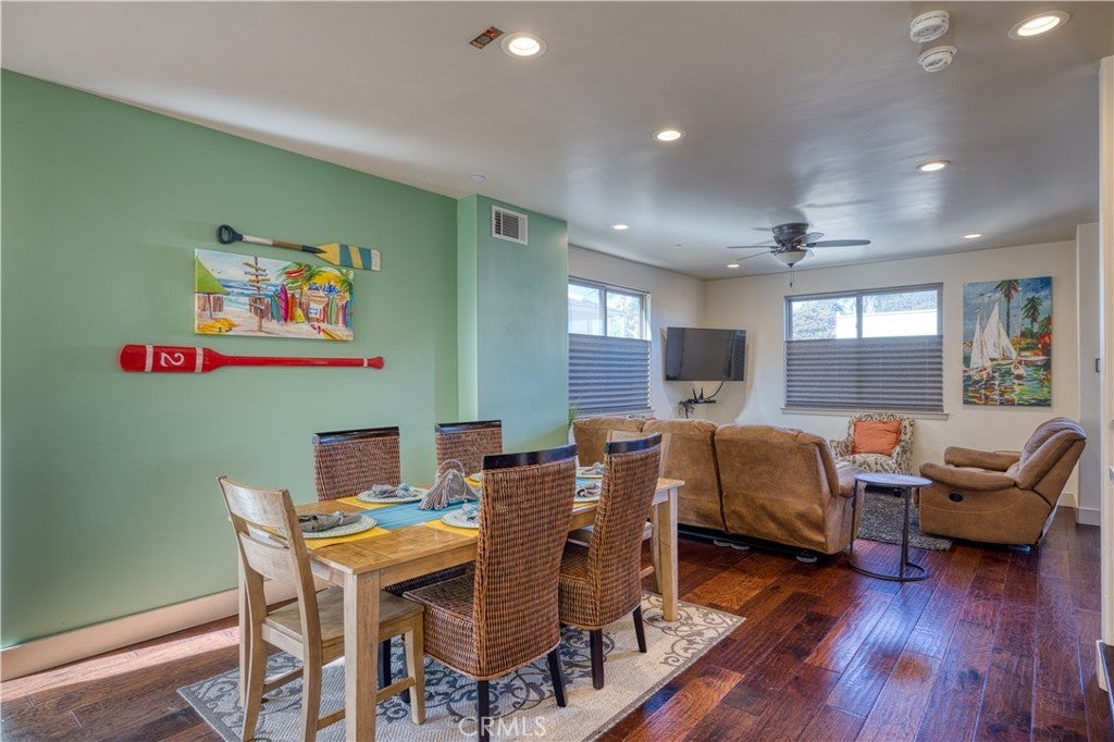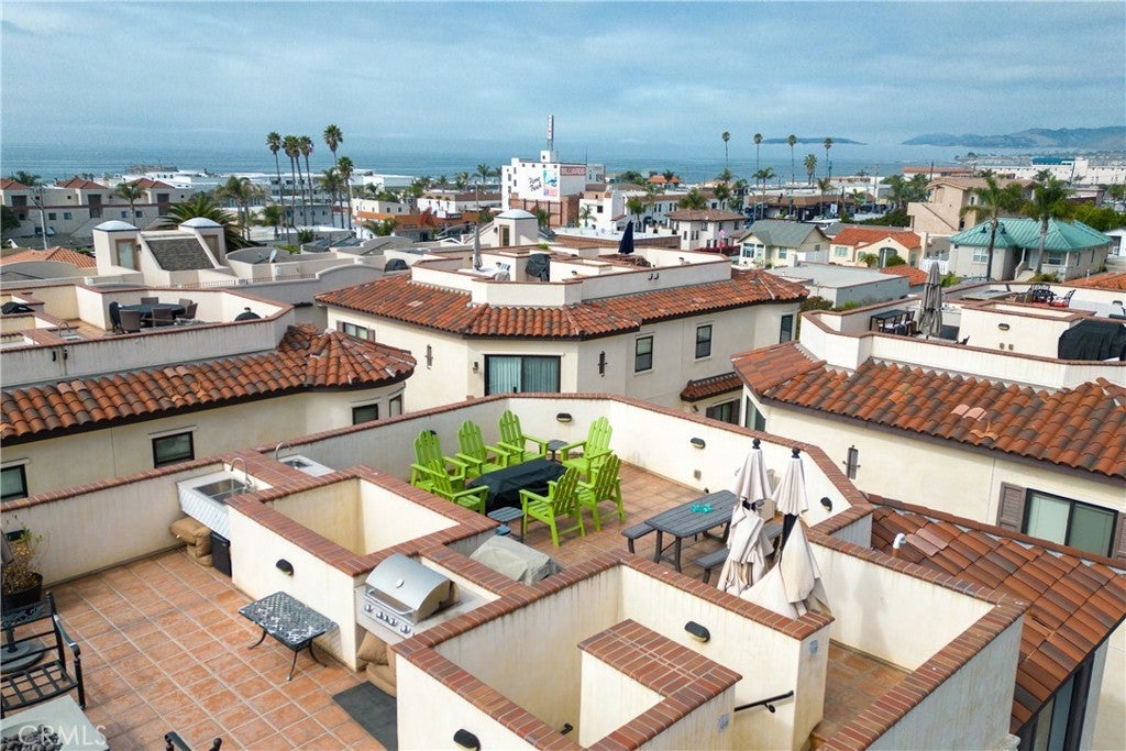 Stunning Mediterranean-style condo just two blocks from the sand, pier, and vibrant downtown dining and shopping. Offering the flexibility of full-time coastal living, a luxurious vacation retreat, or an income-producing investment, this property is currently being utilized as a licensed short term vacation rental. The 3-bedroom, 3.5-bath 1769 sq ft residence includes a private 1-bedroom, 1-bath Casita with kitchenette and separate entrance—ideal for guests or extended family stays. From the spacious 2-car garage, a private staircase leads to the main living level, while a separate staircase from the street provides additional access for convenience. Inside, wood floors flow throughout the open-concept living and dining areas, complemented by a chef’s kitchen featuring quartz counters, stainless steel appliances, and high-end finishes. A powder room completes this level. Upstairs, the luxurious primary suite offers a serene sitting area and spa-like en-suite bath with dual vanities and a large walk-in shower. A second bedroom with full bath and a conveniently located laundry room complete this floor. The ground-level Casita offers flexibility with its own access from the garage and the private staircase. Crowning the home, an expansive rooftop deck captures panoramic ocean views—perfect for entertaining or savoring spectacular sunsets. Combining elegant finishes with modern convenience, this property embodies the very best of upscale beachside living with exceptional income potential.