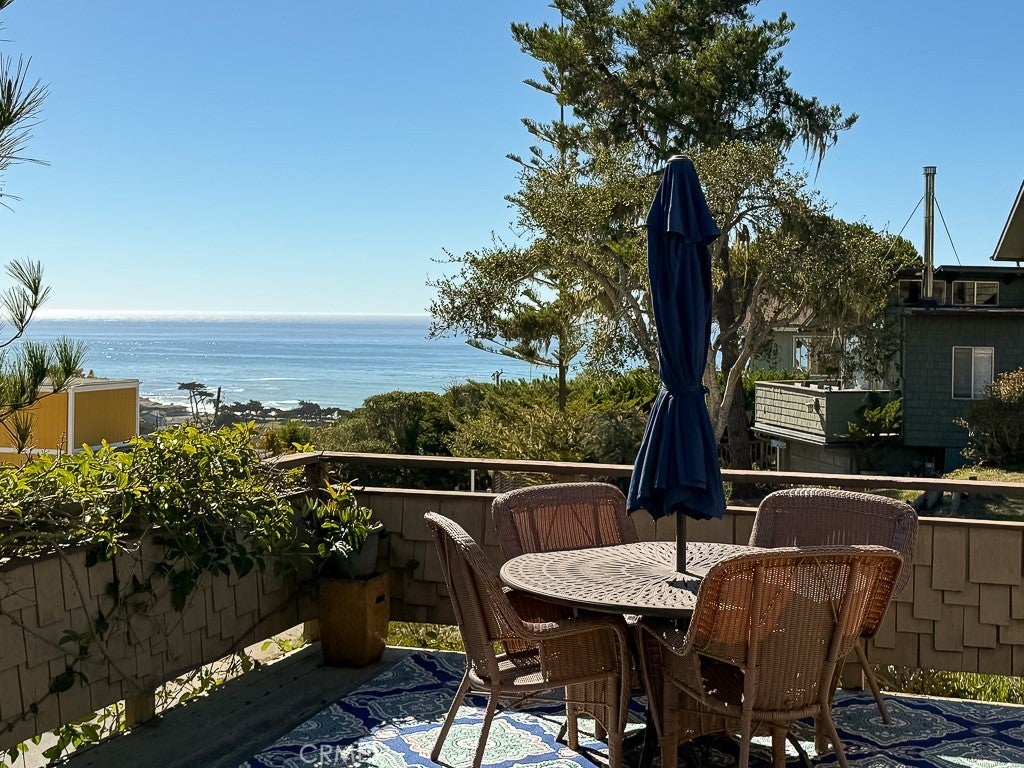 Romantic Ocean-View Cottage on peaceful Happy Hill!! Experience the best of coastal living in this established licensed vacation rental. Built in 1949, this storybook Cambria charmer blends ocean vistas with a serene, woodsy setting—where deer, wild turkeys, and herons are frequent visitors. Once you’re up the entry stairs, the home offers single-level living with vaulted wood ceilings, hardwood floors, and skylights that fill the space with natural light. Take in ocean views from the living room, kitchen, and primary bedroom, then step onto the deck to enjoy stunning white-water views and refreshing sea breezes. With three bedrooms and two baths, this coastal retreat combines comfort, character, and income potential—just blocks from Moonstone Beach and the West Village of Cambria with dining, shopping and wine tasting.
