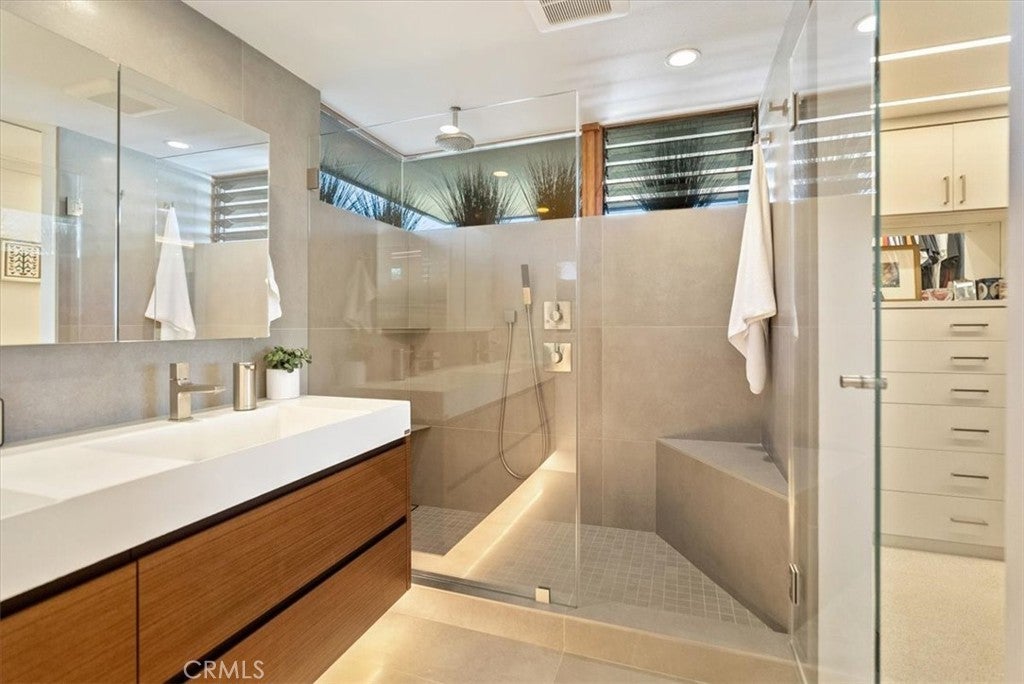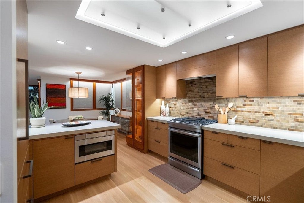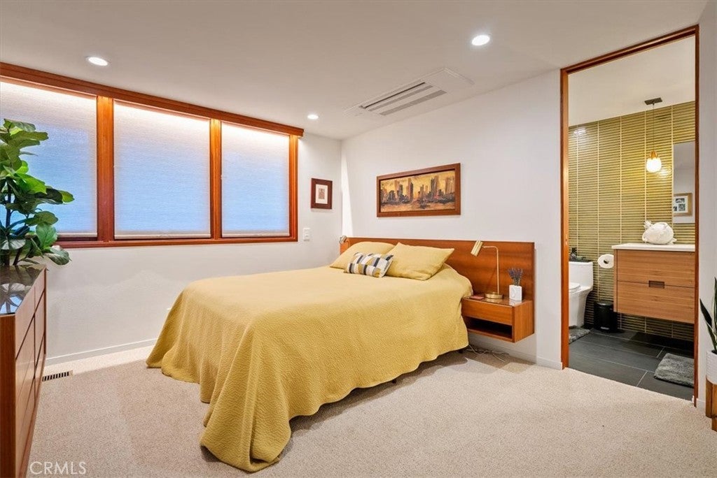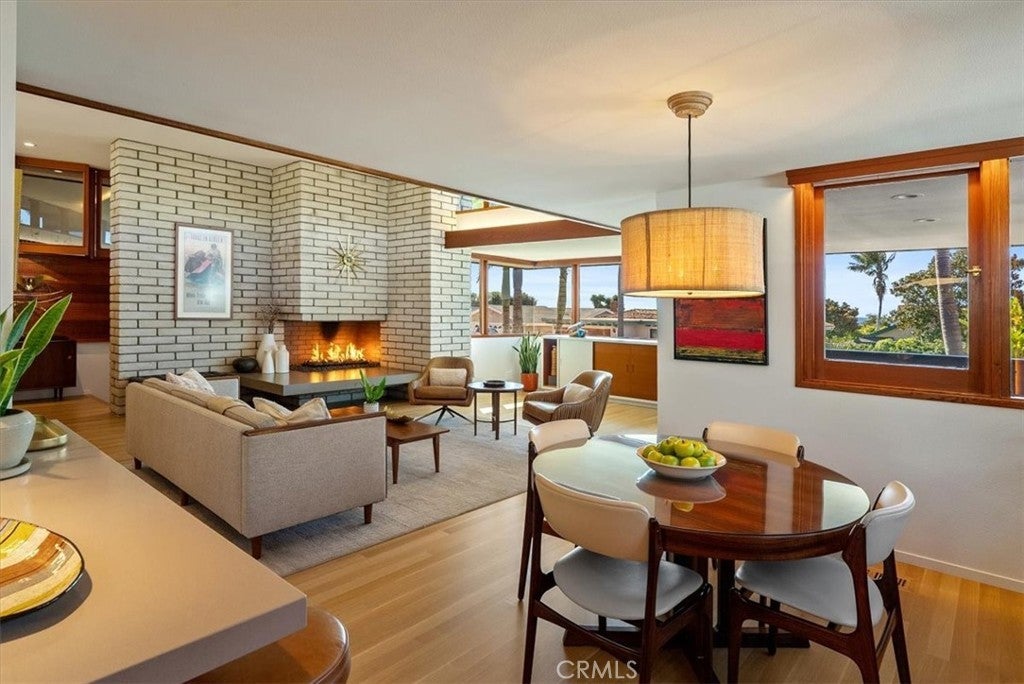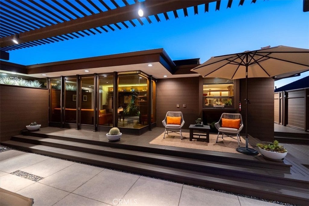 New Year repositioning presents your opportunity to experience this architecturally distinctive Mid-Century Revival with sweeping upper-level ocean views. Set in the coveted Sunset Palisades of Shell Beach, this residence offers an elevated yet relaxed coastal lifestyle defined by light, flow, and seamless indoor–outdoor living. Thoughtfully renovated over the past decade, the home honors its original design while enhancing every detail for modern comfort, durability, and everyday livability. Beyond dramatic 12-foot double entry doors, the 2,245 sq ft interior unfolds with calm intention. Rift-sawn white oak floors, clear-cut cedar and Douglas fir millwork, and custom grain-matched cabinetry create a warm, cohesive design language throughout. Original mitered glass windows frame the coastline and fill the main living spaces with natural light. The living and den areas balance form and function with bespoke TV lift cabinetry and walnut-veneered built-ins that discreetly integrate technology. The kitchen is equally considered, featuring white oak cabinetry, Bosch, JennAir, and Sub-Zero appliances, Wa-kei Waiko Japanese tile, Kiesebohmer storage systems, and a skylight topped with a custom 3form panel that provides soft ambient light. Upstairs, the primary suite is a private retreat with its own ocean-view balcony and panoramic vistas stretching south from Point Sal to Avila Bay. Caseta by Lutron lighting, a floating vanity, poured concrete countertop, and Hansgrohe fixtures define the spa-inspired ensuite. The second bedroom includes an ensuite bath, while a third bedroom—currently styled as an office—offers flexibility with custom cabinetry and generous storage. Outdoor living is thoughtfully layered across levels. The lower deck functions as an extension of the home, ideal for gathering, dining, and enjoying the ocean breeze. The backyard entertaining area features specialty concrete floating terraces, a fireplace with custom concrete hearth, integrated seating, a Lynx BBQ, a cantilevered bar, and rare 1960s Peill & Putzler pendant lighting beneath a trellis. Mature landscaping, including King palms and producing Hass avocado trees, enhances privacy and tranquility. A side yard includes a detached storage shed with potential for a future spa and outdoor shower. Moments from beaches, parks, and the charm of Shell Beach, 130 Hermosa Drive is designed for living—where architecture, light, and coastal perspective align.
