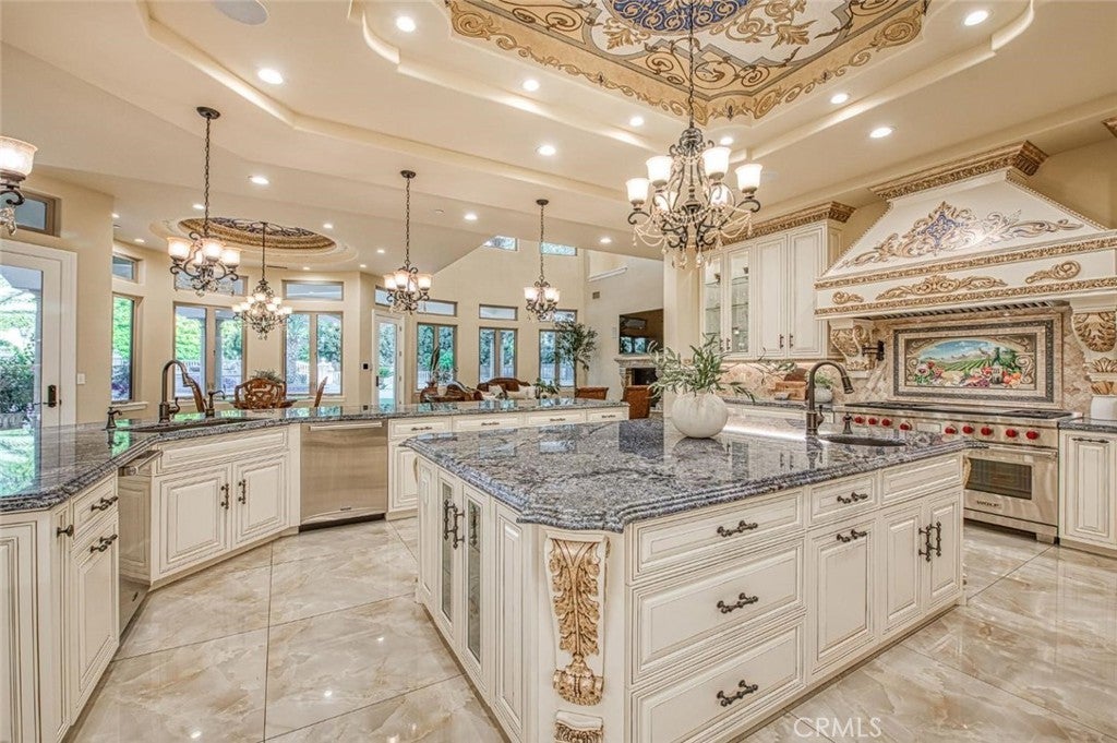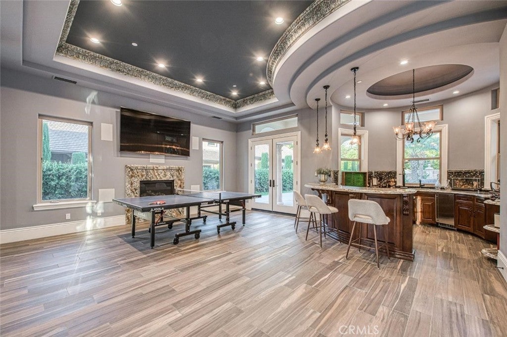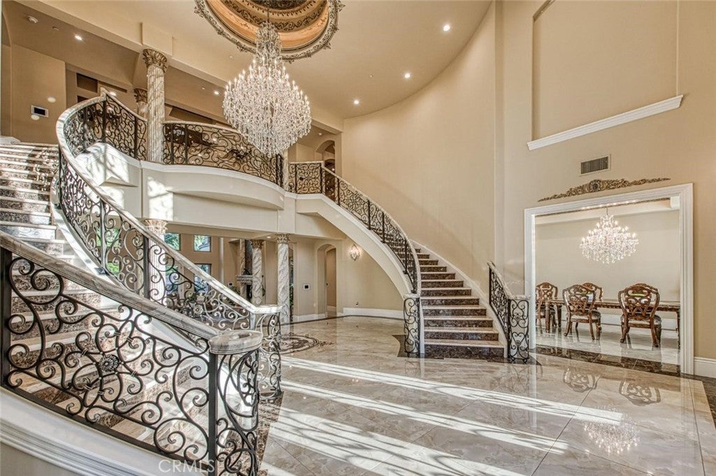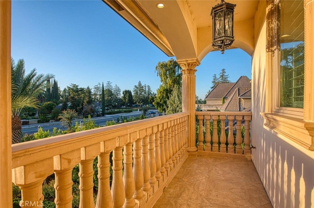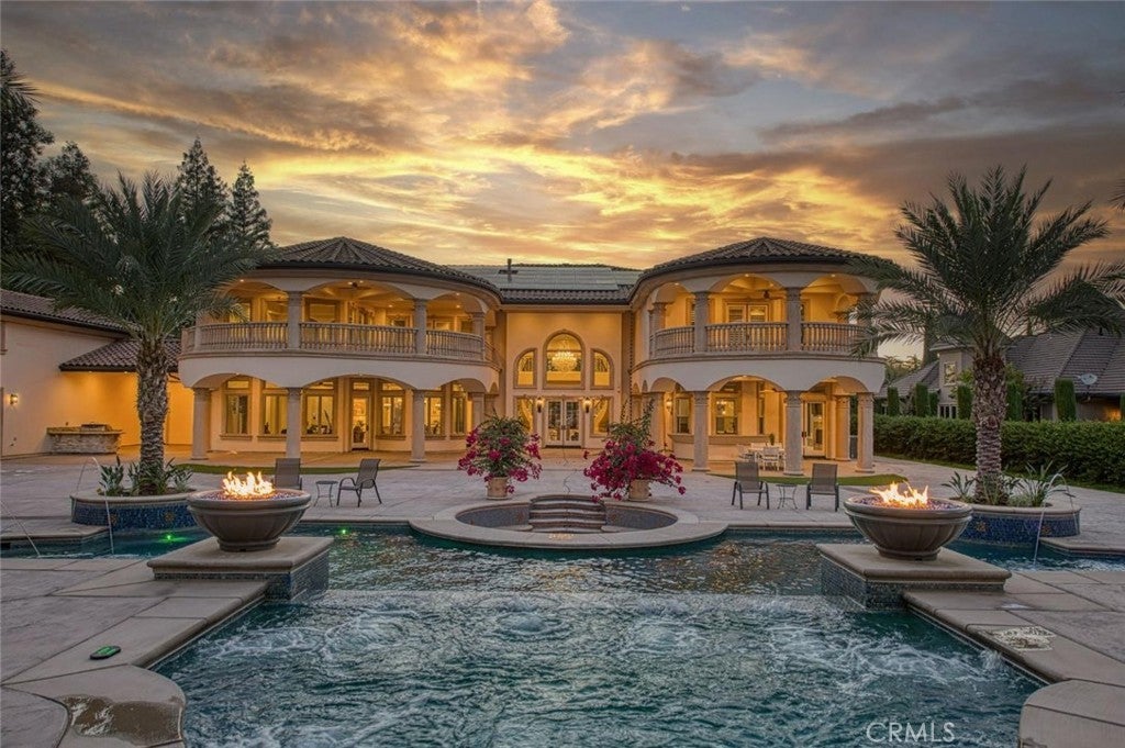 Welcome to one of Fresno's most extraordinary estates, a 10,000+ square-foot residence that epitomizes luxury living along the iconic Van Ness Boulevard. Upon entering through the grand double doors, you are greeted by a stunning 10-foot custom medallion of laser-cut flooring, setting the tone for the home's exquisite craftsmanship and timeless elegance. Designed for both grand entertaining and intimate living, this estate boasts five en-suite bedrooms and eight bathrooms, each meticulously appointed. The formal dining room captivates with crown molding, arched windows, and a breathtaking chandelier. The chef's kitchen is a culinary masterpiece, featuring a Wolf range, double ovens, dual dishwashers, a Sub-Zero refrigerator and freezer, a food warmer, and rare Blue Bahia granite imported from Brazil.The residence offers both a formal living room and a great room, a stately library with custom crown molding and gallery lighting, and a home theater and game room with a circular bar and built-in ice maker. This Smart Home is equipped with 12 integrated iPads controlling lighting, sound, and security throughout. Artistry abounds with hand-troweled walls, custom ceilings, an elevator, and marble stairs accented by Emperador risers and a bespoke wrought-iron railing. The primary suite is a private sanctuary, featuring a balcony, fireplace, jetted tub, glass vessel sinks, and a custom walk-in closet with built-ins. Each additional bedroom includes its own private balcony.Outdoors, a resort-style oasis awaits, featuring a sparkling pool with water features and a light show, a 15-person spa, a step-down firepit, and an outdoor kitchen with rough-edge granite counters. Over 7,000 square feet of stamped concrete, artificial turf, mature trees with drip irrigation, and meticulously curated landscaping complete this remarkable space.Additional amenities include an owned solar system with 80 panels, an electronic chandelier-lowering system, five fireplaces, a butler's pantry, a wine cellar, a mudroom, a storage room, and a four-car finished garage with five doors and dedicated RV parking (accommodating up to eight vehicles). Every inch of this property exudes luxury, artistry, and comfort, crafted for those who demand the finest in design and living.