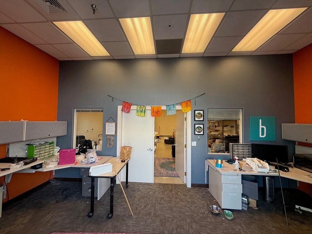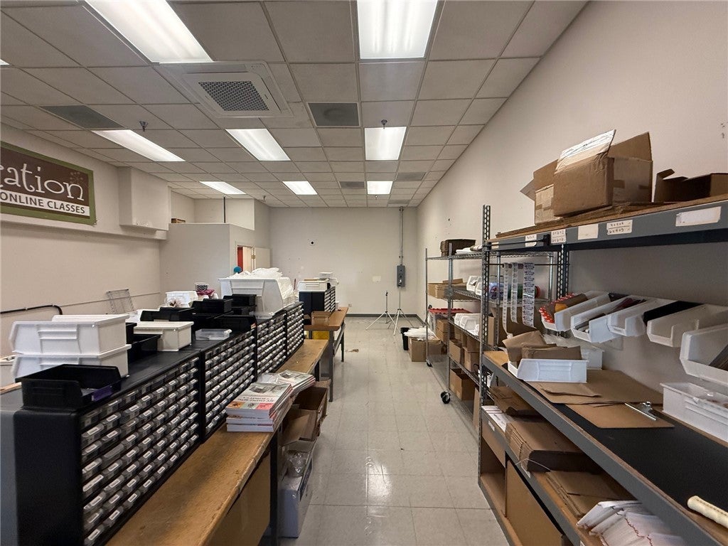 Approximately 1,100 SF consisting of a front office area and a large rear open area with good lighting. Quiet location with plentiful parking.