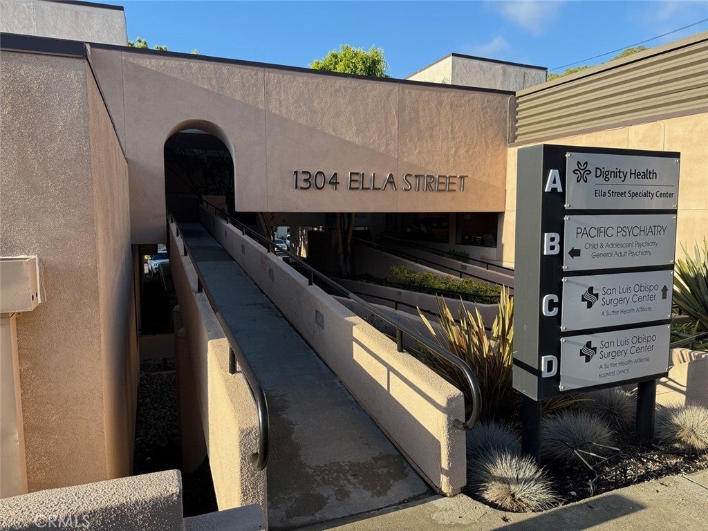 1304 Ella Street Units C and D are comprised of a fully leased and improved surgery center of 6,144 SF (Unit C) as well as a 1/3 LLC interest in a 1,000 SF administrative office (Unit D). Both suites are leased to the San Luis Obispo Surgery Center, a subsidiary of Sutter Heath. Both leases expire on August 31, 2030. The Surgery Center has been a long-term stable tenant, as both leases commenced on September 1, 2015. The Suite C lease expires on August 31, 2030 and the current net income for the 6,144 SF suite is $18,619.66 per month NNN. There are 2% annual increases on September 1st of each year. The Suite D lease expires on August 31, 2030 and the current net income for Suite C’s ownership interest is $792.98 NNN. There are 2.5% annual increases on September 1st of each year. Based upon the current annual net income of $232,952 the cap rate at the asking price of $3,515,000 is 6.6%. 1304 Ella Street is located directly adjacent to the French Hospital Medical Center, San Luis Obispo County’s preeminent hospital.