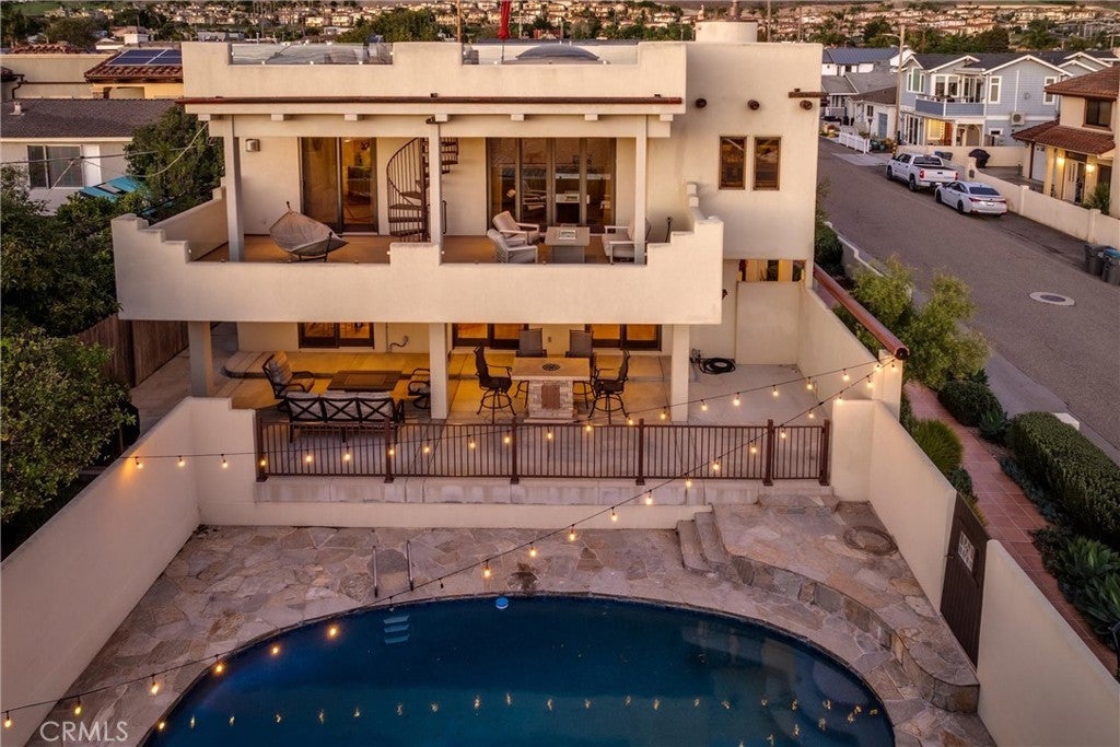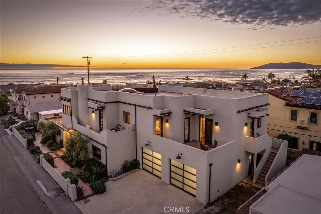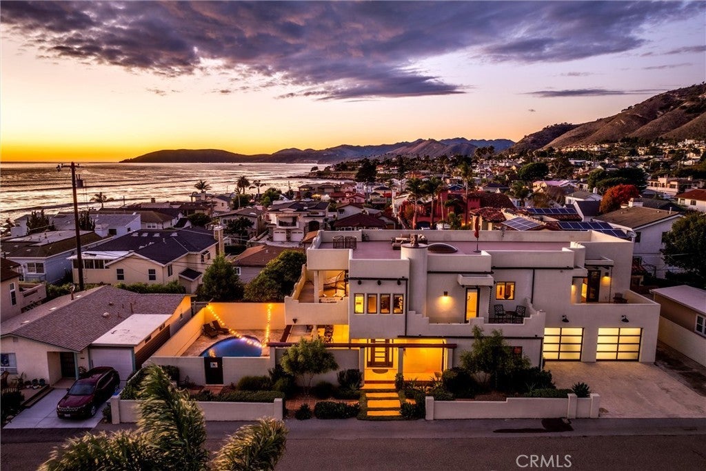 Experience the absolute pinnacle of sophisticated coastal living in this magnificent, fully remodeled 3280 sqft Shell Beach estate. This home presents a striking updated modern aesthetic with clean lines, copper accents, smooth coat stucco exterior walls, and muted tones. Inside, the beautiful European oak flooring spanning the open floor plan, and appointed with custom built-ins throughout offer a cohesive and stylish space. This multi-level masterpiece offers expansive living areas, including a main floor living room, as well as an upper-level family room complete with a full wet bar—perfect for entertaining—which opens directly onto an expansive mid-level ocean view deck. The gourmet chef's kitchen features knotty alder cabinetry, quartzite countertops, walk-in pantry, and a suite of top-tier Sub-Zero and Wolf appliances. The home boasts spacious accommodations, including a luxurious owner's suite with fireplace, spa-like bathroom with massive walk-in closet, plus an additional bedroom with its own en-suite bathroom and private balcony, and a separate bedroom downstairs with it's own exterior access. For the ultimate outdoor experience, the upper floor roof deck offers an unparalleled, 360-degree vista of the entire coastline and surrounding landscape. The generous 7,200 sq. ft. lot is an entertainer’s paradise, showcasing a sparkling swimming pool surrounded by an outdoor entertainment area, plus a highly desirable private 1 bedroom/1 bathroom guest apartment is a great option for rental income or guests coming to visit. Complete with possibly the largest garage in Shell Beach, this modern style oversized 4-car garage is neatly tucked away amidst the lush Mediterranean landscaping surrounding the home. This is truly a rare opportunity to own a coastal turn-key, resort-style property, and one that is unparalled.