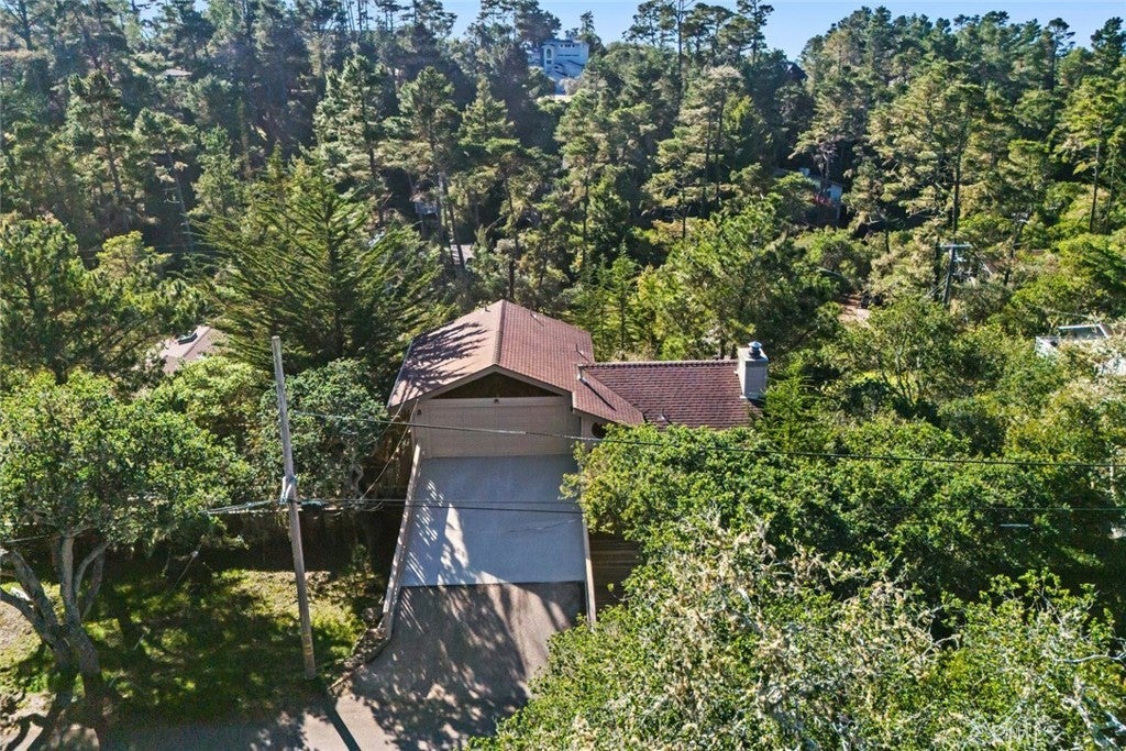 Imagine sipping coffee under the vast sky to views of treetop canopies! Discover a rare sense of privacy with this split-level 3-bedroom, 2.5-bath retreat, thanks to undeveloped neighboring parcels, enhancing the surrounding natural beauty. Inside, vaulted cedar ceilings stretch above hardwood floors, while a flagstone fireplace warms the open-concept living room. Bright light pours through front and rear sliding doors, creating a seamless flow to scenic decks where pine vistas and sea breezes await. Granite countertops, stainless steel appliances, and a smart design elevate the kitchen for weekend entertaining. Your primary suite feels like a sanctuary, complete with dual closets, an exclusive balcony, and an ensuite. Enjoy the soothing sounds of the ocean during tranquil evenings at home. Outside, the fenced yard includes a patio, while a bonus area under the house is ideal for storage. Notables include no steep stairs to navigate, a laundry nook, and an EV charging port in the 2-car garage. Set west of the Pacific, this striking haven puts you close to Fiscalini Ranch Preserve and its upper trails, Hwy 1, and Cambria. Come see what coastal magic it can weave!