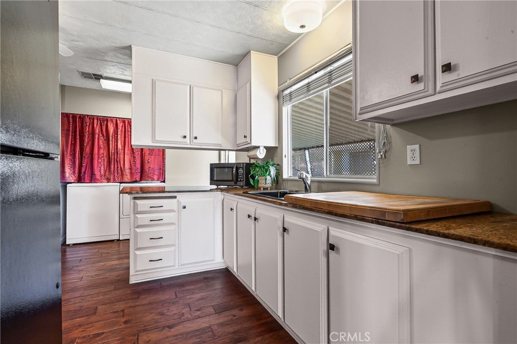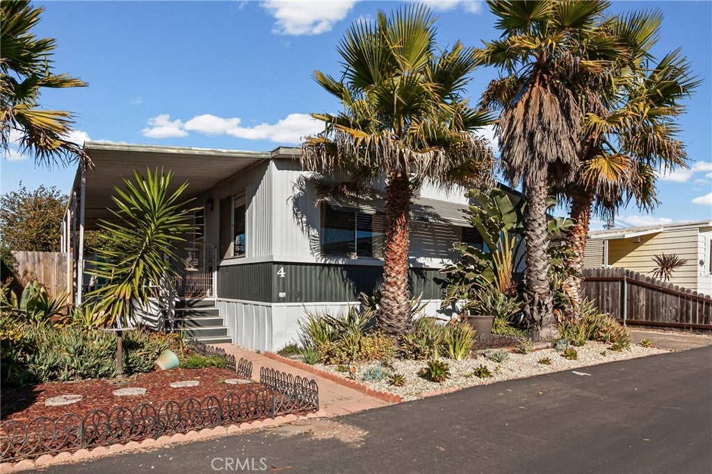 This lovingly-cared-for home is located in a desirable all-ages park offering great amenities, including a pool, clubhouse, and pool table. Space rent is a remarkable value at under $400 per month, making this one of the most affordable and attractive communities in the area. The property includes a private, large backyard with room to entertain or garden and is accented by beautiful palm trees in the front yard for added curb appeal. The home has been extensively updated with quality finishes throughout. Interior improvements include drywall in the living room, dining area, and primary bedroom, hardwood flooring throughout (with tile in the primary bath), and granite kitchen countertops. The kitchen also features freshly painted cabinetry, updated hardware, a premium garbage disposal, and a filtered drinking-water spout. Additional upgrades include new subfloor insulation, a new moisture barrier, and a gas line installation for the dryer. The primary bathroom remodel features a resurfaced shower and countertop. This home has shown exceptional long-term reliability — no roof leaks, furnace or water heater issues, or structural concerns. The central location is ideal being 2 miles from Oceano Dunes and 2 miles to the 101. Enjoy a quiet, friendly community setting with well-kept grounds, wide streets, and pride of ownership throughout.