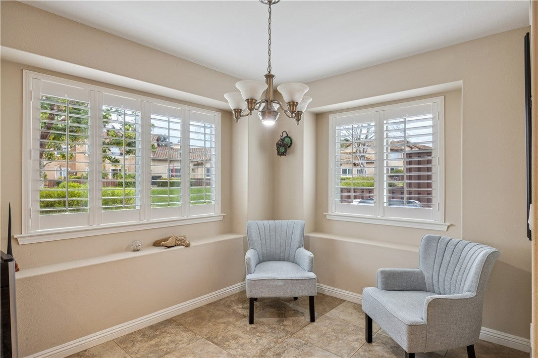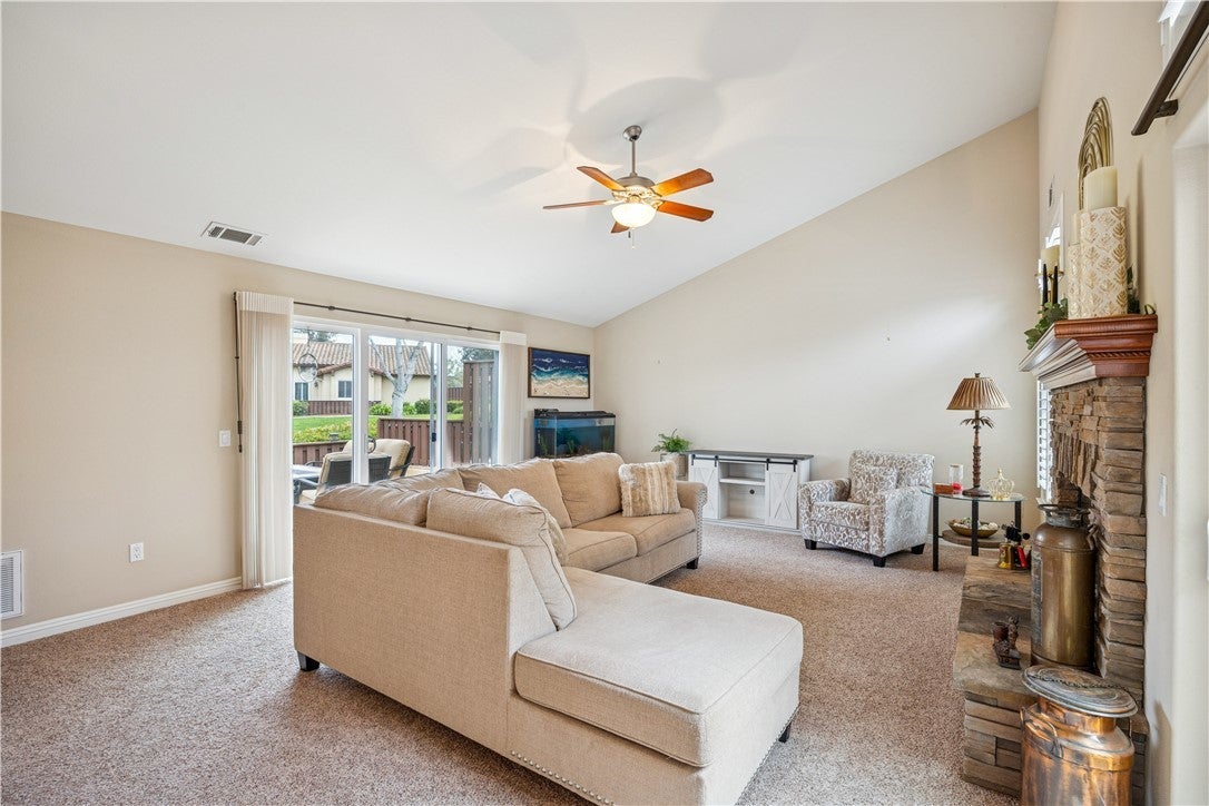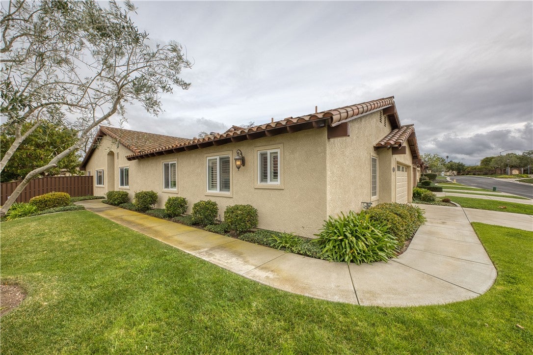 Set within the serene Foxenwood Garden Villas, this immaculate 2-bedroom, 2-bath residence offers refined living just minutes from Highway 101 and the charm of downtown Old Orcutt. Built in 2007 and spanning approximately 2,144 square feet, the home is defined by quiet sophistication, high ceilings, and an abundance of natural light centered around a beautiful interior garden atrium. The open living and dining areas are warm and inviting, enhanced by earth-toned finishes, plantation shutters, and generous windows that fill the home with natural light. Lush carpeting throughout the living areas adds comfort and warmth, while stone tile flooring in the kitchen, laundry room, and baths provides durability and timeless appeal. The gourmet kitchen is thoughtfully designed for both everyday living and entertaining, featuring granite countertops, a custom tile backsplash, ample cabinetry, and premium stainless steel Viking appliances. A versatile bonus room with vaulted ceilings and sliding glass door access to the atrium functions beautifully as a home office, den, or optional third bedroom. Both bedrooms are generously sized and feature en suite baths. The primary suite serves as a private retreat, offering dual closets with custom cabinetry and a spa-inspired bathroom complete with vaulted ceilings, soaking tub, dual sinks, and a beautifully tiled walk-in shower. Outdoors, a private patio overlooks a tranquil greenbelt, creating an ideal setting for quiet evenings or alfresco dining. Additional highlights include a spacious laundry room with abundant storage and a utility sink, along with access to the community clubhouse, pool, and spa—all complemented by low HOA fees. Peaceful, polished, and ideally located, this exceptional home offers comfort, style, and convenience in one of the area’s most desirable neighborhoods.