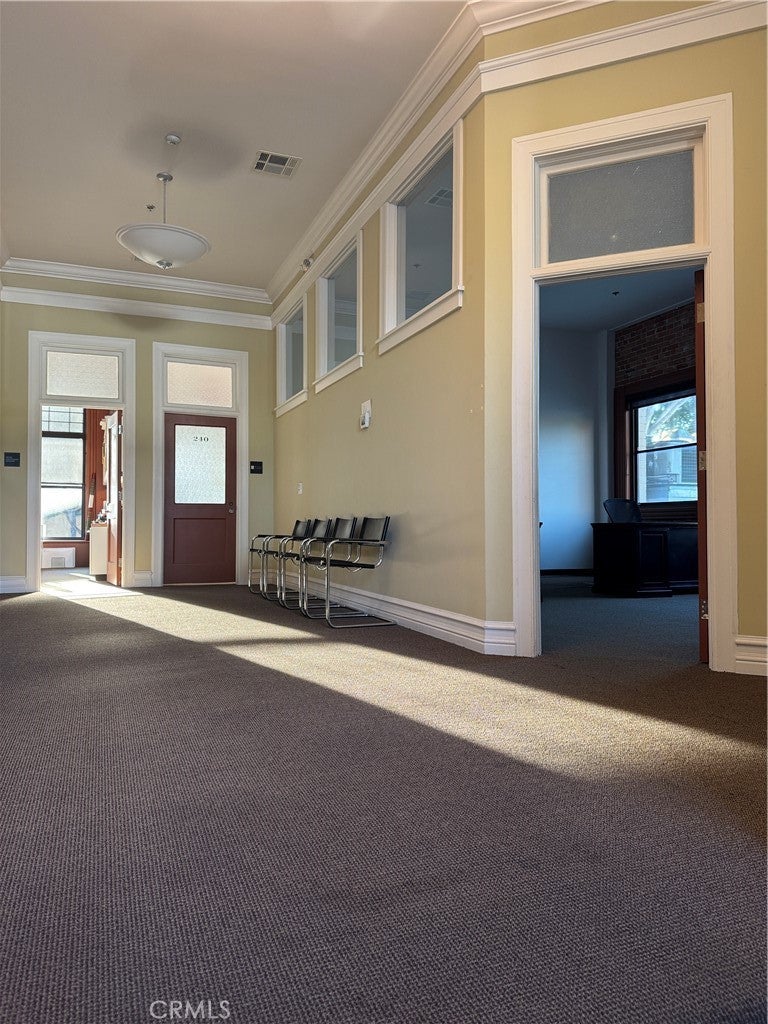 An exceptional chance to lease a premier office space in the Historic Johnson Building. This space was formerly occupied by the SLO Chamber of Commerce and is now executive office space in the heart of downtown San Luis Obispo. The large 352 SF office is on the second floor and features vaulted ceilings and natural light from two windows. The location is at the intersection of Higuera and Chorro, steps from great shopping, restaurants and the world famous Thursday night Farmer’s Markets.
