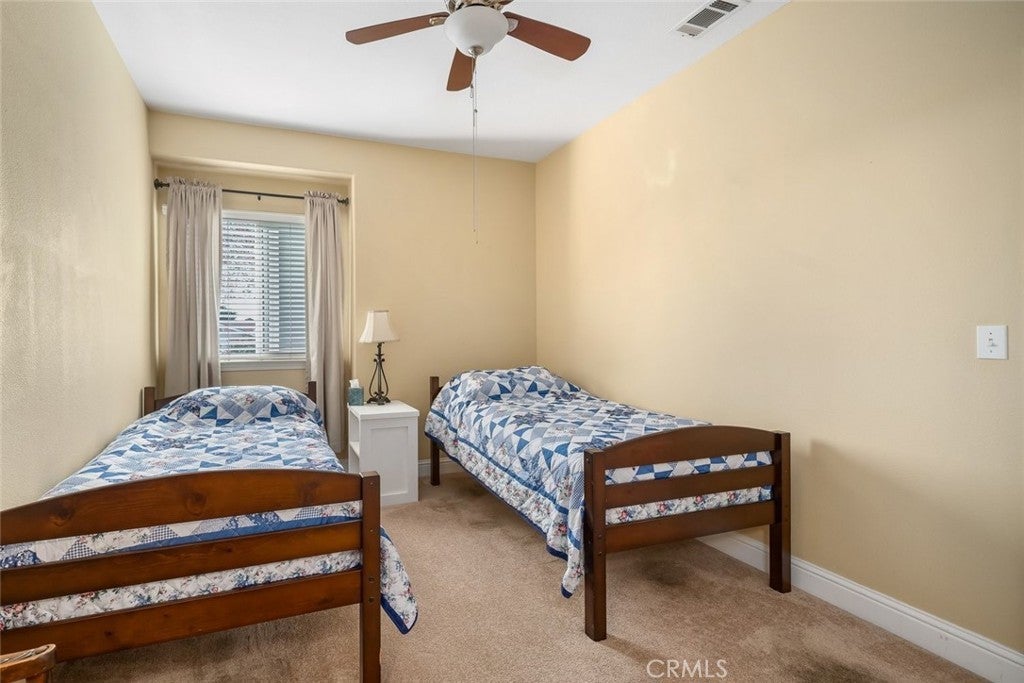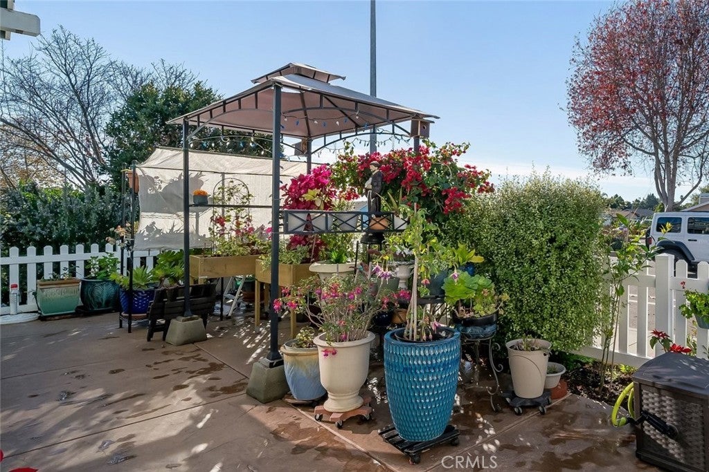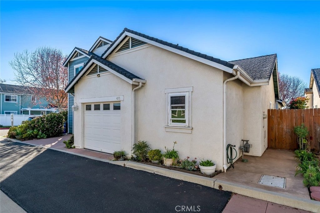 The cutest single level home in the Brambles of Arroyo Grande! This charming two-bedroom, two-bath, single-level residence boasts adorable curb appeal with a white picket fence, front patio, and colorful shrubbery. Inside, an inviting open-concept layout is filled with natural light streaming through multiple windows. The living room features a quaint built-in and ceiling fan, creating a warm and welcoming space. The kitchen is well-appointed with Corian countertops, stainless steel appliances—including a dishwasher, refrigerator, gas range with double oven, and microwave—and a wraparound counter that provides breakfast bar seating and is perfect for entertaining. An office with built-in storage opens to the backyard, where a private concrete patio offers a lovely spot to relax. The primary suite includes a ceiling fan and an ensuite bathroom with a tiled walk-in shower and dual-sink vanity. A second bedroom with its own ensuite bath completes the interior. An attached two-car garage provides convenient parking and additional storage. This home offers thoughtful design and versatile living spaces in a sought-after neighborhood, conveniently located near local shopping, the Village of Arroyo Grande, the beach, and more.